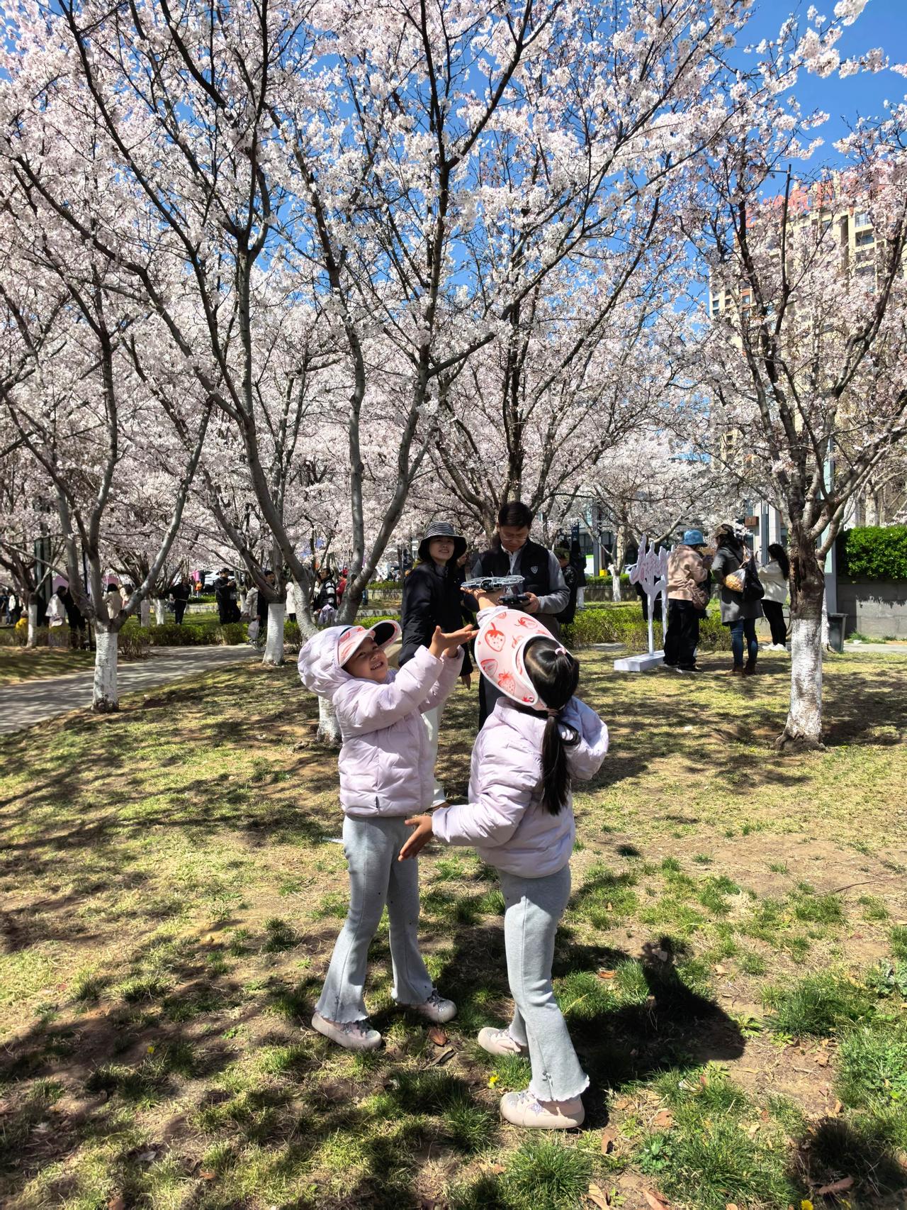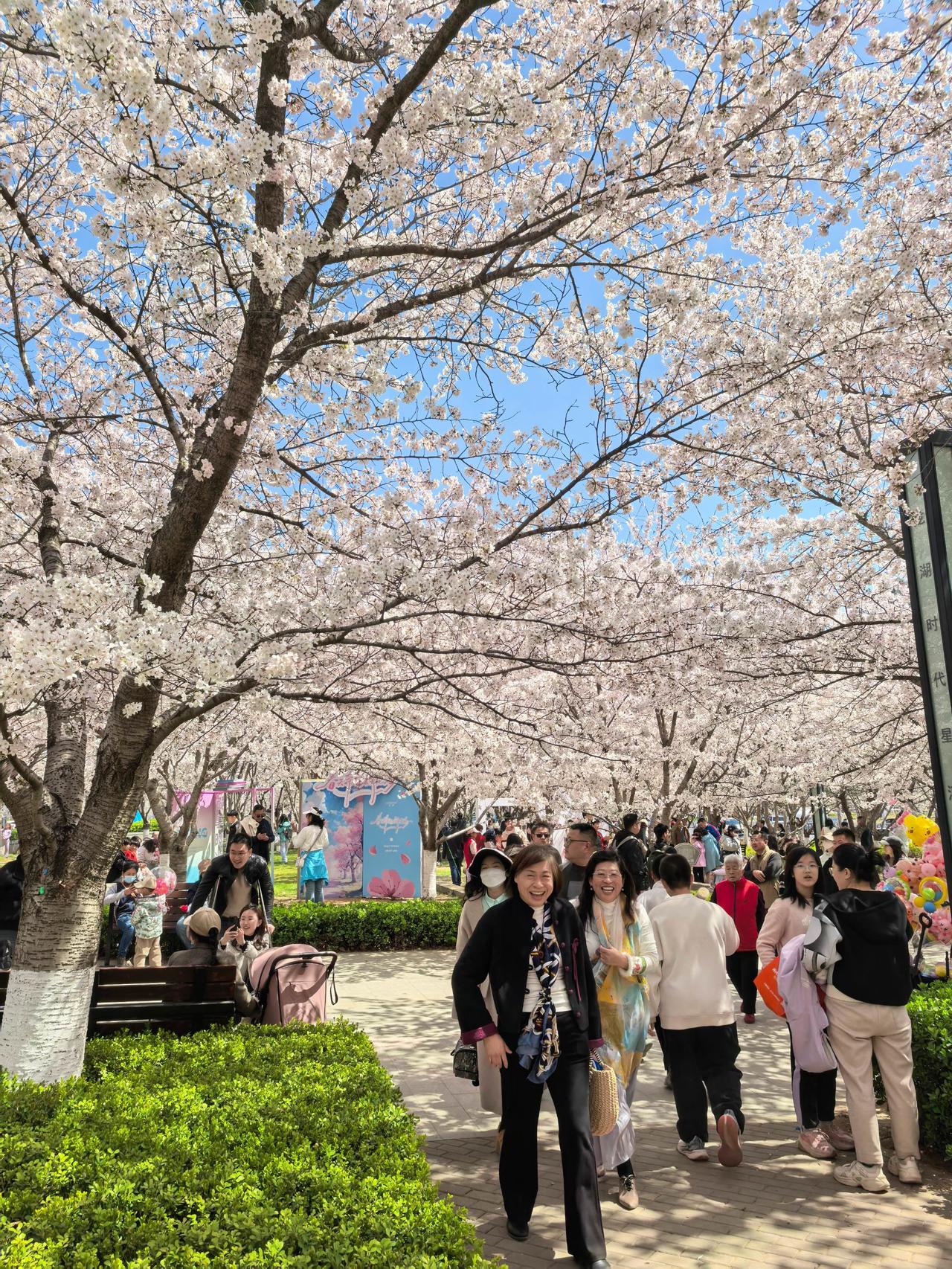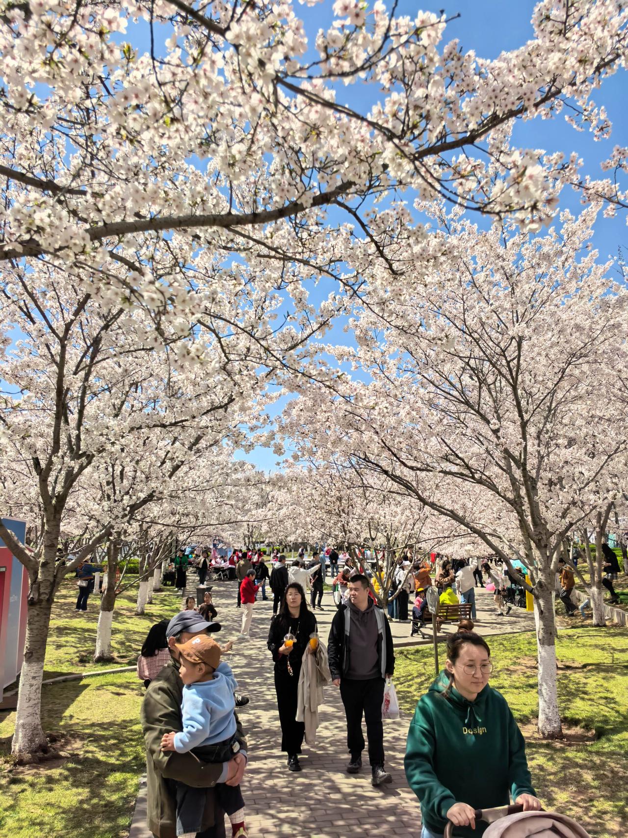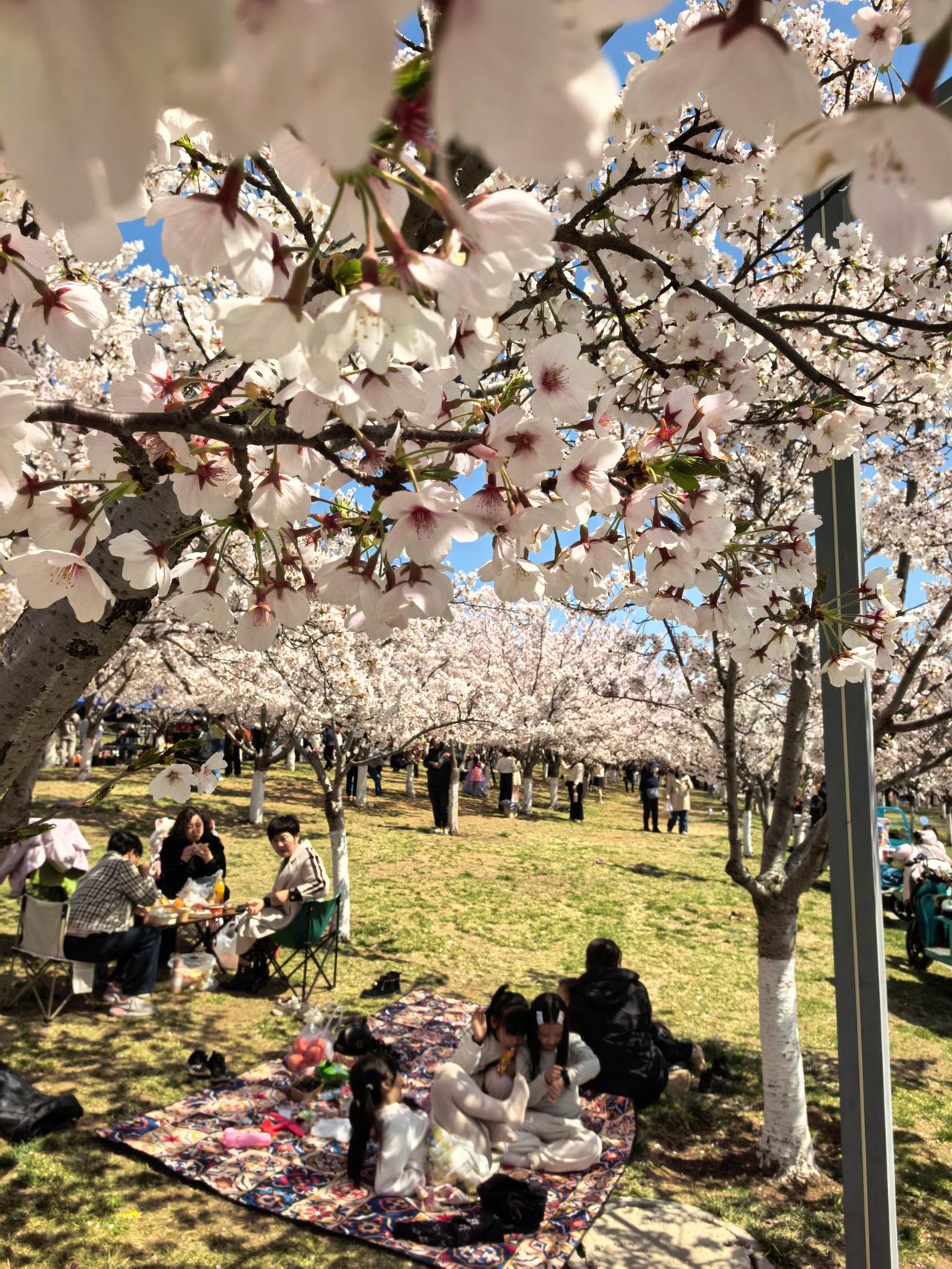 4月6日,游客在牟平区龙湖樱海公园赏花。
