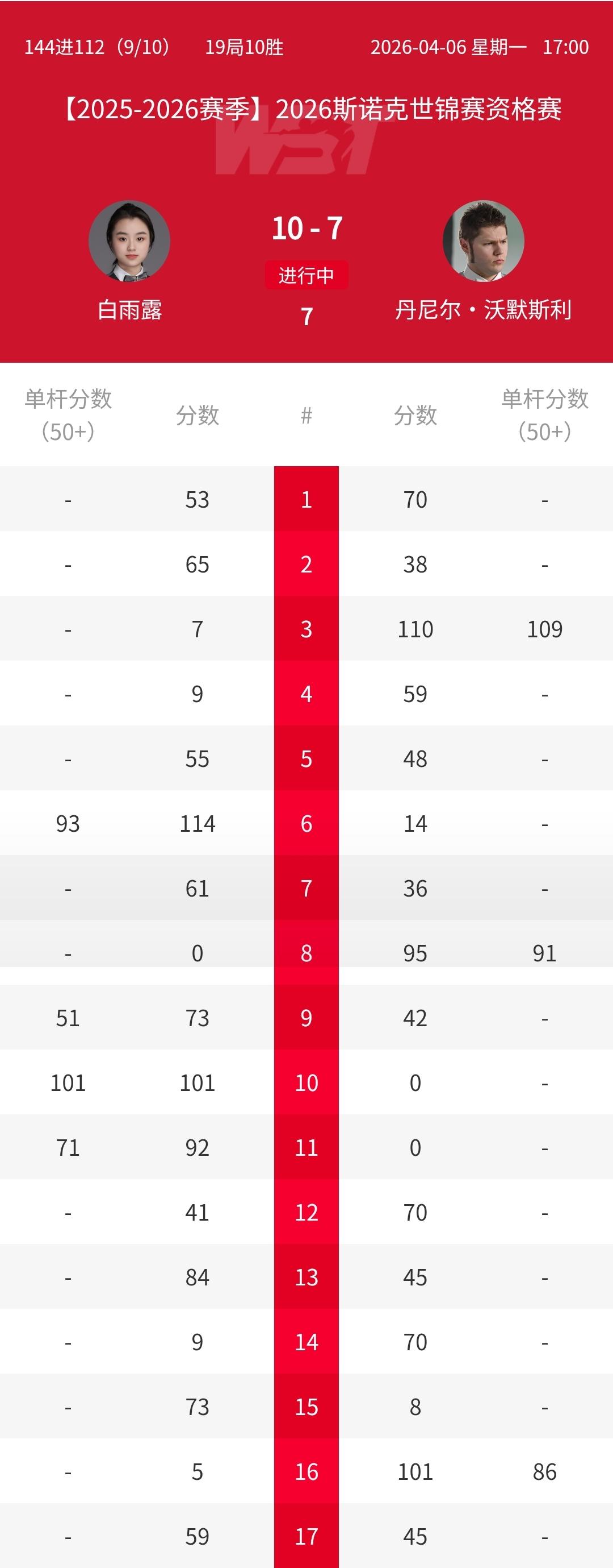 一觉醒来,天大的惊喜来了!白雨露领衔4位中国小将晋级斯诺克世锦赛资格赛次轮。 白雨露10-7丹尼尔,小白打出一杆单杆破百,4杆50+。 姚鹏成10-9瑞安戴维斯,7-2领先被逼入决胜局。 高阳10-9吉米怀特,4-5落后,决胜局逆转绝杀。 王信伯10-4曼恩,持外卡参赛的王信伯首轮赢得最轻松,打出了自己的特点。只要上手即可一杆超分。