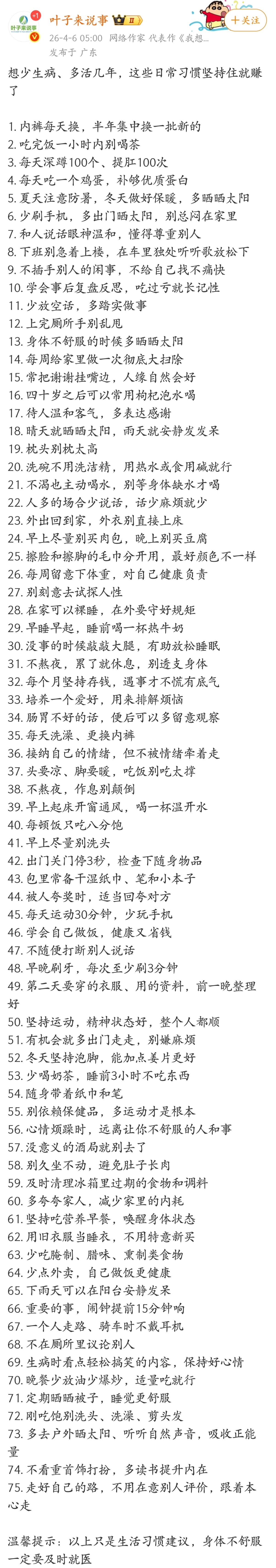 想少生病、多活几年,这些日常习惯坚持住就赚了。
