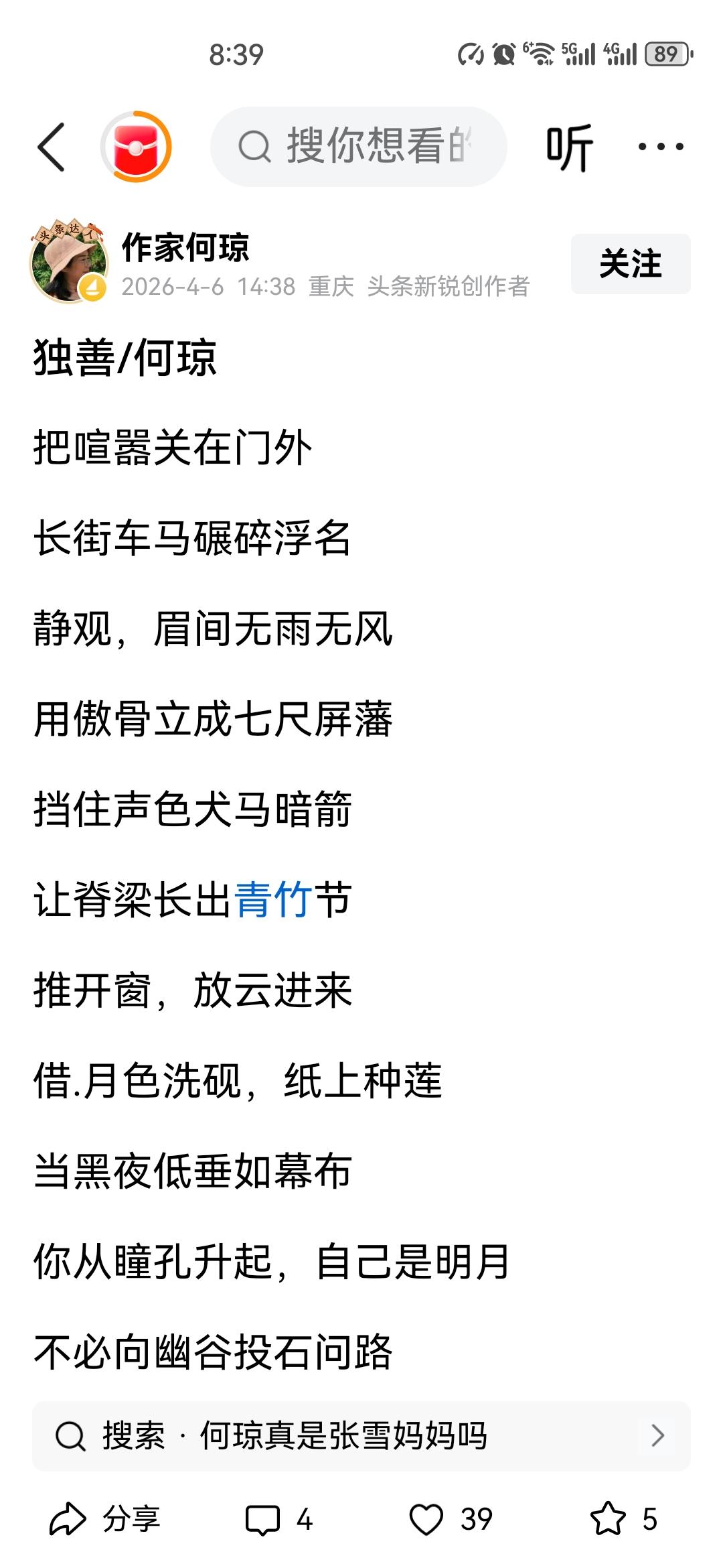 何琼是张雪母亲吗?第一眼看到,还以为是有一个女作家,有一个张雪的儿子呢? 仔细一看去看张雪妻子的账本,有一个“妈妈”55万元借款,再看合影,看了一下何琼信息,张雪年轻的时候说到,母亲再嫁到福建了。这应该是母子了,只不过张雪看着好像不情愿的样子。 缺席了童年和青春的陪伴,兄妹俩相互扶持成长,对母亲多少有点疏离。 但看到母亲借给他55万元创业,也应该是在弥补这种母爱吧。 当然也有网友评论,出名了这是在蹭儿子的流量吧,我看了下,她母亲的文字确实也还写得好,在今日头条也有几万的粉丝了。 这其实也有点实力了,自考厦大中文系,成为作家,说明母子都是一个不服输的性格。
