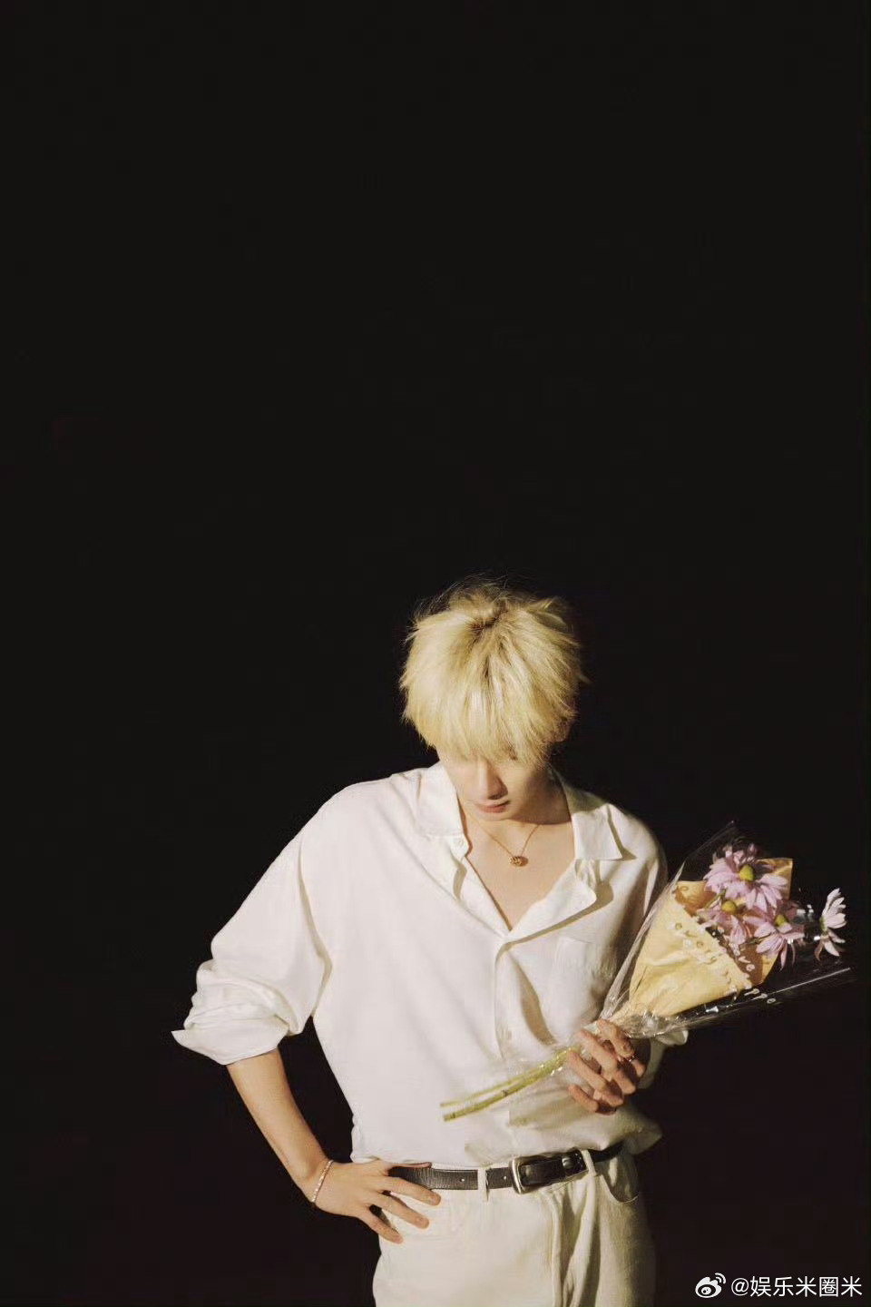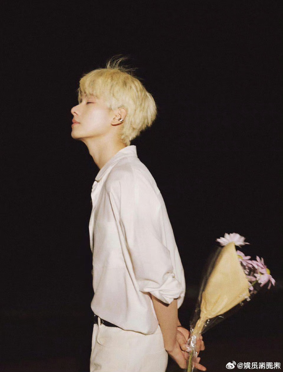 胡先煦金发帅得我有心事了彻底被金发海边造型拿捏心动,明月高悬氛围感拉满,捧花神图
