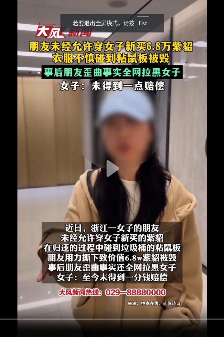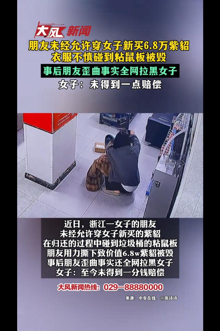 浙江,女子朋友未经允许穿女子价值6.8万紫貂大衣,在还回去的时候不慎碰到粘鼠板,用力一扯导致紫貂被毁,事后女子朋友不赔偿,还和其他人歪曲事实拉黑女子,女子网上曝光朋友! 一位女士花了6.8万买了一件紫貂大衣。结果呢?她的“朋友”未经允许,自己把大衣拿出来试穿了。女子发现后就让其朋友赶快脱下来。 可是女子朋友脱下来之后,随手往沙发上一扔,连挂回衣架的耐心都没有。 还回去的时候,更绝——大衣不小心碰到了垃圾桶上的粘鼠板。 粘鼠板这东西有多粘,用过的都知道。她往下扯的时候,大衣上的一块皮毛直接被扯坏了。 6.8万的紫貂大衣,就这么毁了。 然后呢?这位“朋友”的操作堪称教科书级别的“避责三部曲”: 第一步,不赔偿。 第二步,在其他人面前歪曲事实,把自己包装成无辜的受害者。 第三步,拉黑。 女士上门找说法,对方的回应是:“我找了律师,请和我的律师对话。”法律来判,赔多少钱我都认。 女子无奈将事件发到了网上曝光了朋友的行为,事件发生后也引发了网友热议,有的网友说,“6.8万的大衣,未经允许拿去试穿,弄坏了还不赔?这种朋友不告她告谁?支持原主直接起诉,连律师费一起算上!” 也有的说,“粘鼠板又不是长腿自己跑过来粘大衣的。东西是你拿的,试穿是你试的,放沙发是你放的,弄坏也是你弄的,跟人家原主有什么关系?赔偿是最基本的做人道理。” 还有的说,“紫貂大衣不是普通衣服,这种价格的东西借给别人穿,本身就有风险。你要是借出去一辆法拉利被人撞了,也不能光怪开车的人吧?双方都有责任。” 不管是6.8万还是6块8,只要未经别人允许就拿去穿,弄坏了也该赔。这和价格无关和尊重有关,是做人最起码的底线。 这种人,你放一件T恤在她面前她也敢穿,区别只是T恤坏了你不会这么生气而已。 弄坏东西不赔,已经够让人心寒了。更让人无法接受的是——歪曲事实、拉黑。 有人说,想看清一个人,借一次钱就够了。 其实不用,借一件衣服就够了。 6.8万的紫貂大衣确实贵,但比大衣更贵的是看清一个人的人品。有些人,平时吃饭喝酒称兄道 弟,真出了事,跑得比谁都快,甩锅比谁都利索。 这种人失去了不可惜。可惜的是那件大衣。 建议原主直接起诉,该赔多少赔多少。这不是钱的问题,是有些人需要上一课——课名叫“别人的东西别乱动,动了坏了就要赔”。 至于那个找律师的朋友—— 律师再厉害,也改变不了你未经允许试穿别人大衣的事实。