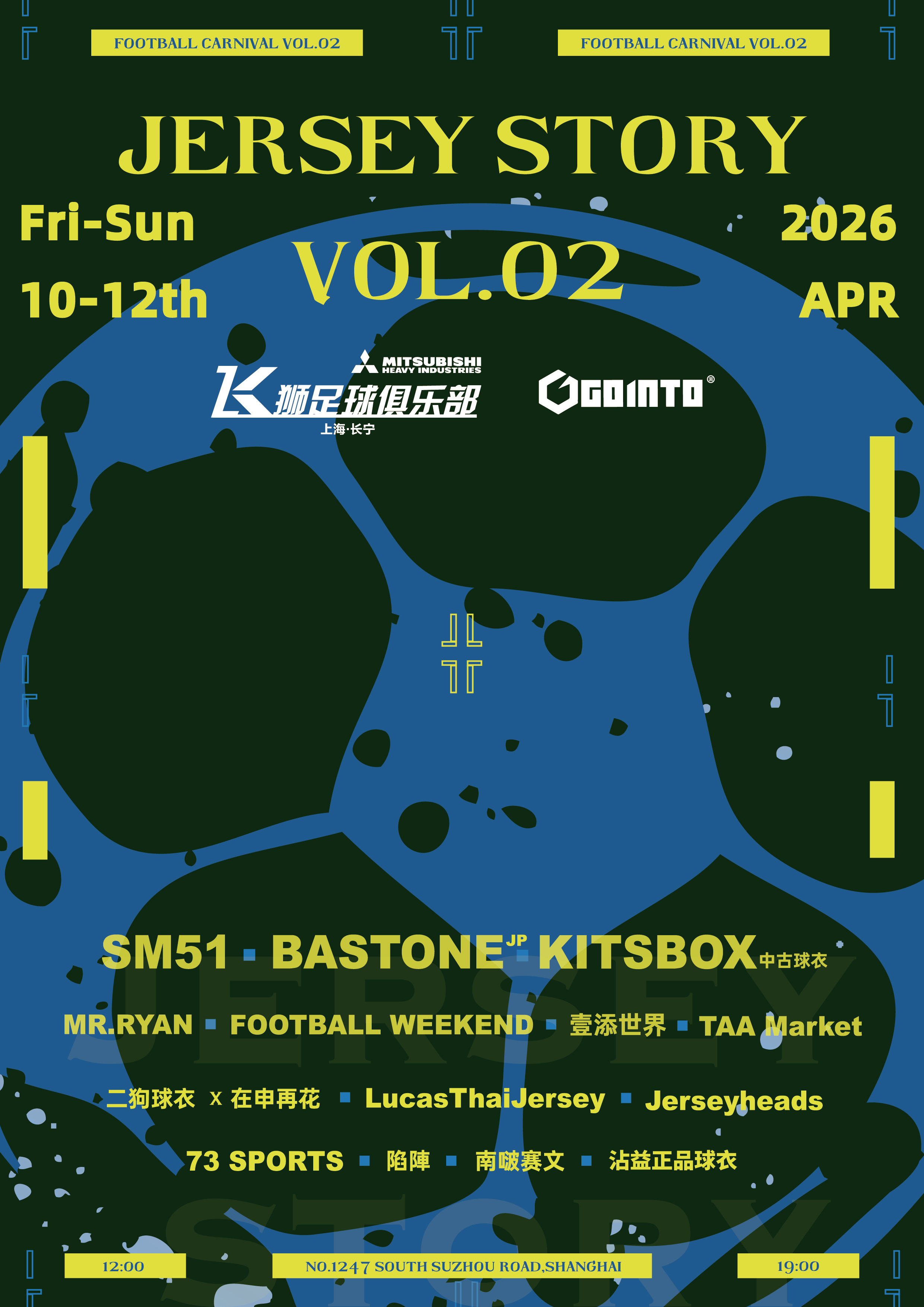 本周末上海球衣集市这次有北京、成都和广州的球衣店铺加入,周六下午三菱飞狮俱乐部也会在现场发布新赛季球衣。时间:4.10-12日12-19点地点:黄浦区南苏州路1247号门票19.9(包含饮料+抵用券)购票:APP搜索ASCC show贤聊球衣
