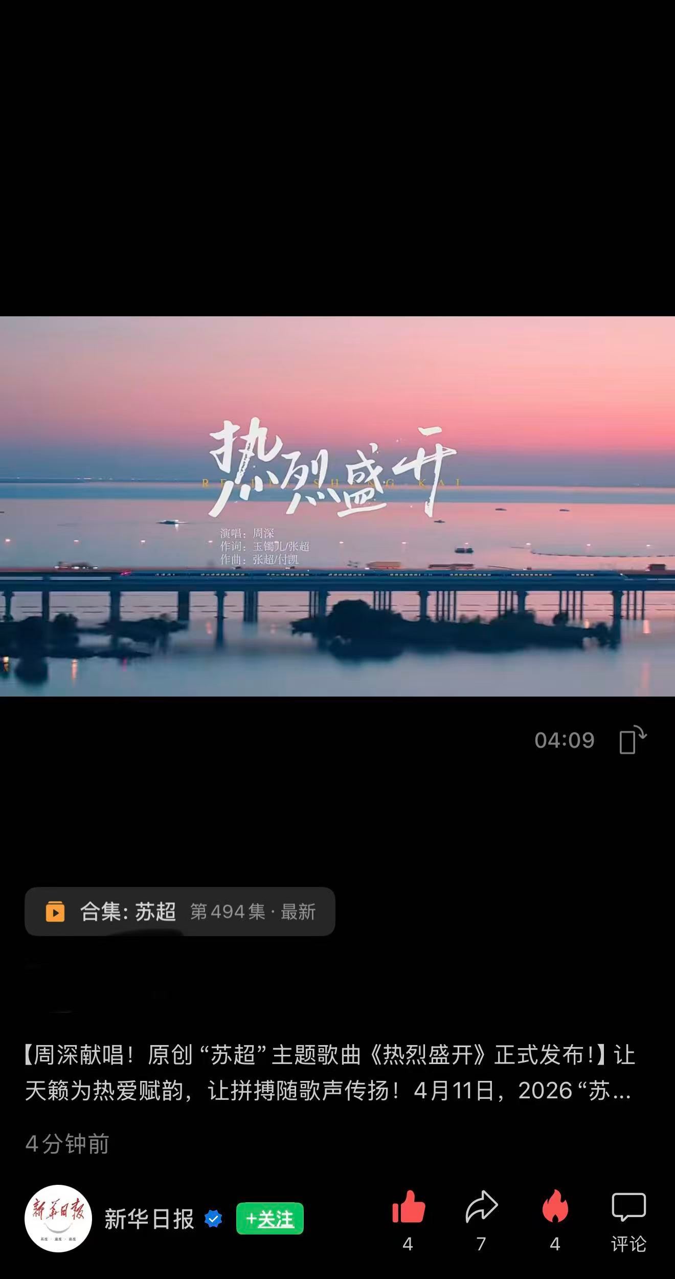 周深 📣4.7 新歌《热烈盛开》MV更新 📣【新华日报】🎶➕vx视频更新深