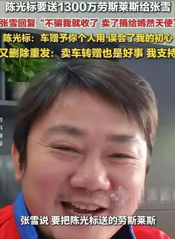 张雪回应陈光标捐款1000万元给嫣然医院:标哥真男人,为你点赞! 标哥是好人善人,就捐款捐物这事,有几个能做到。 这就对了,人家实实在在捐了1000万,说几句客套话赞扬一下也是应该的,互相捧才是正确的! 陈被张架火上烤了,实在没办法了,张是好人。