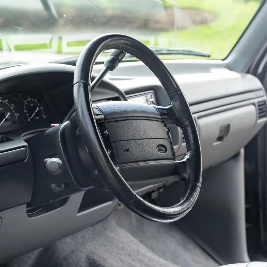 1996年的福特 Bronco XLT Sport,正处于第五代车型的收官阶段,也几乎是传统全尺寸硬派SUV黄金时代的尾声之作。作为一台由首任车主购入并长期持有的车型,它不仅保留了高度原厂状态,更像是一段被完整封存的美式公路记忆。电动尾门玻璃、15英寸(约38厘米)锻造铝轮圈、定速巡航、空调以及电动车窗等配置,在当年已足够体现其“豪华实用”的定位。动力方面,这台车搭载5.8升V8自然吸气发动机(约5800毫升排量),匹配四速自动变速箱,并配备双速分动箱与限滑后差速器。这样的机械组合,在今天看来依旧充满原始而直接的魅力——没有复杂电子系统的干预,一切由机械本身完成。黑色车身搭配浅灰色真皮内饰,在粗犷之中透出一丝克制与沉稳。在90年代的美国,Bronco不仅是一台交通工具,更是一种生活方式的象征。它承载着长途旅行、露营、越野与自由的想象。当时代逐渐走向精致与高效,这种简单直接、带着V8轰鸣的全尺寸SUV,反而显得愈发稀有而令人怀念。福特烈马 经典情怀老车 硬派越野 汽车知识分享计划