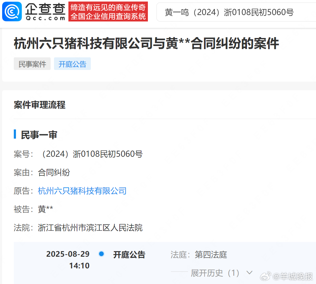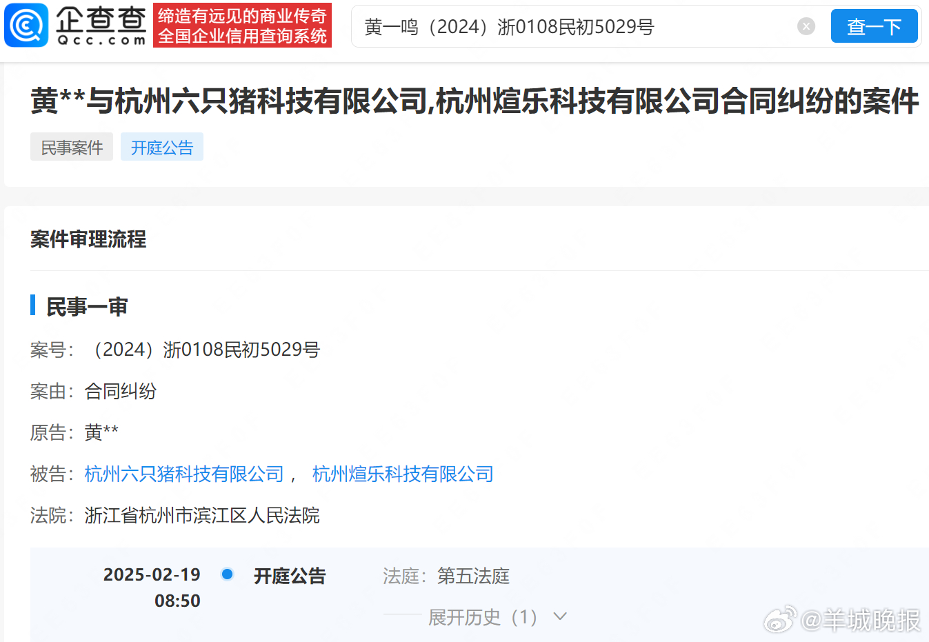 【#黄一鸣被执行55万#】#黄一鸣因合同纠纷被限高# 企查查APP显示,近日,黄一鸣因未按执行通知书指定的期间履行生效法律文书确定的给付义务,被杭州六只猪科技有限公司申请限制高消费。今年2月,黄一鸣已因此案被执行55万余元。此前黄一鸣曾直播吐槽前公司很坑,进去后发现只有她一个主播,老板利用她没钱养孩子的心理和她签署带违约金的合同,自己着急赚钱想走时被公司起诉索赔120万,该金额为对方诉求,非生效判决。案件流程信息显示,2024年12月,黄一鸣曾因合同纠纷起诉杭州煊乐科技有限公司、杭州六只猪科技有限公司,该案于2025年2月在浙江省杭州市滨江区人民法院开庭审理,后杭州六只猪科技有限公司反诉黄一鸣,案件于同年8月开庭审理。更多消息:#月鳞绮纪直播##阚清子参加浪姐瘦了一圈##张元英穿搭基础身材就不基础##江语晨急寻律师##找到邓家佳不来浪姐的原因了##谢依霖用郭碧婷送的杯子装酱油#(编辑:杨雨桐;审签:谢杨柳)