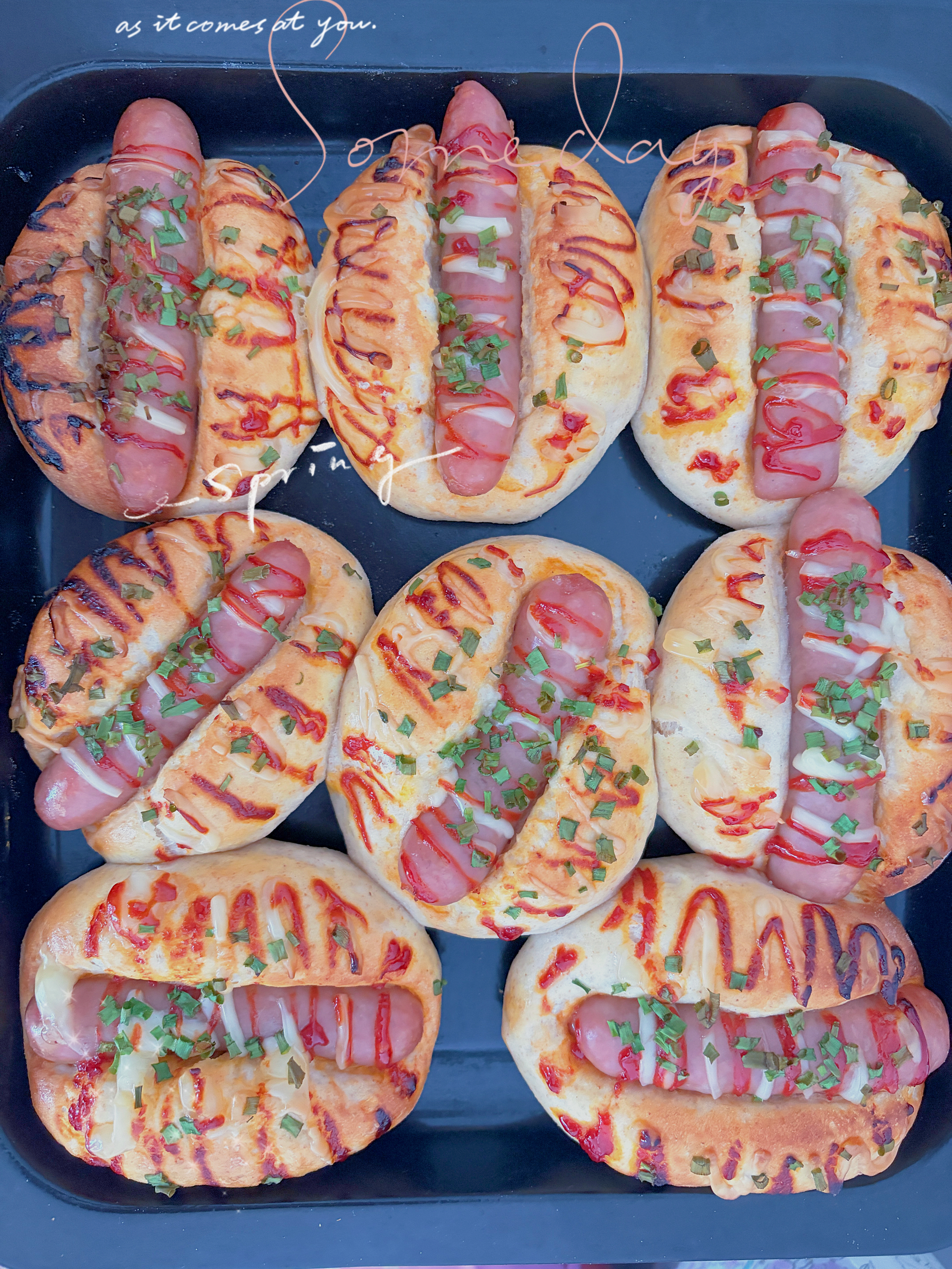 🌿🌿🌿🌿🌿🌿🌿8.整形好的面团进行二次发酵9.发酵好的面团表面刷蛋液10.挤上沙拉酱和番茄酱撒上葱花11.放入预热好的烤箱上火155度下火170度20分钟,根据自己烤箱条件。