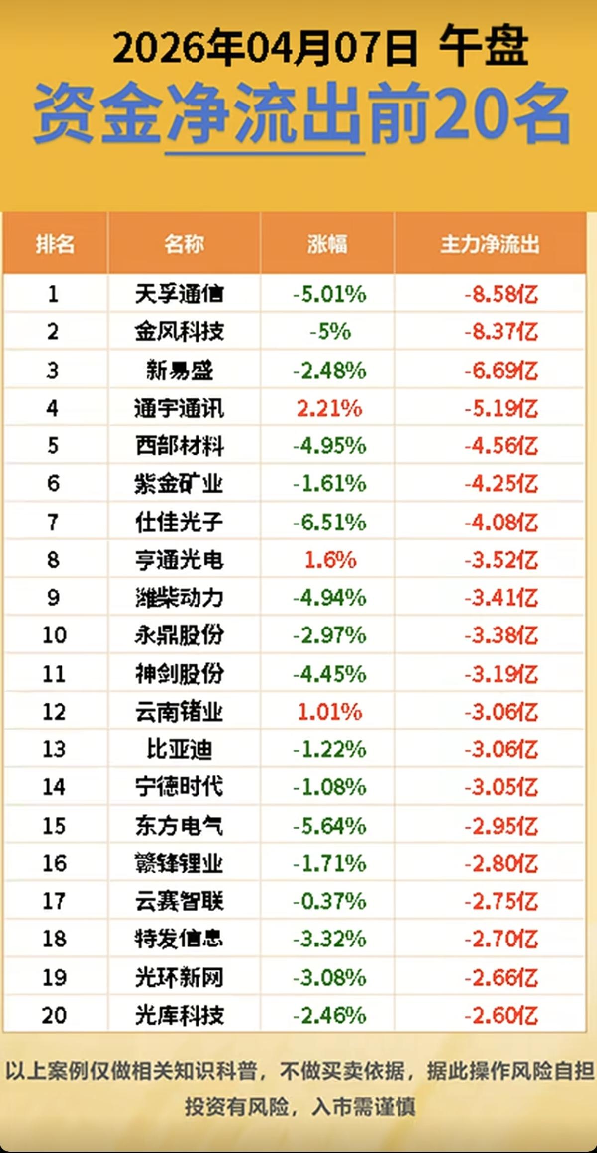4.7周二 主力大资金 抢筹出逃个股榜!