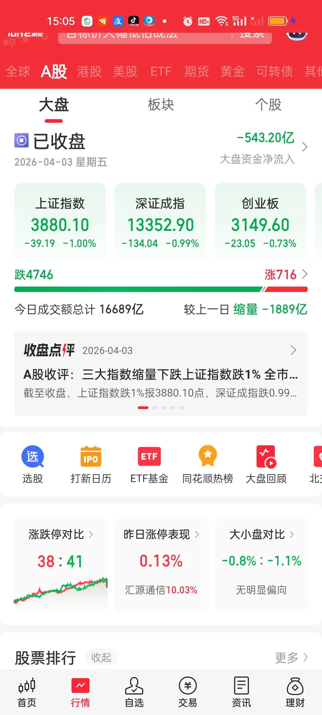 这个成交量缩的很厉害。上周三中午收盘成交量是13357亿,全天收盘20248亿。上周四中午收盘成交量11968亿,全天收盘18577亿,上周五港股休市,没有北向资金,中午收盘成交量10790亿,全天收盘16689亿。 所以理论讲今天要和上周三和上周四的量能进行对比。而今天中午收盘成交量只有10780亿,是远远低于上周三和上周四的成交量的。没有成交量,一切都是白搭,没有资金维持,一件商品就很难维持高位!