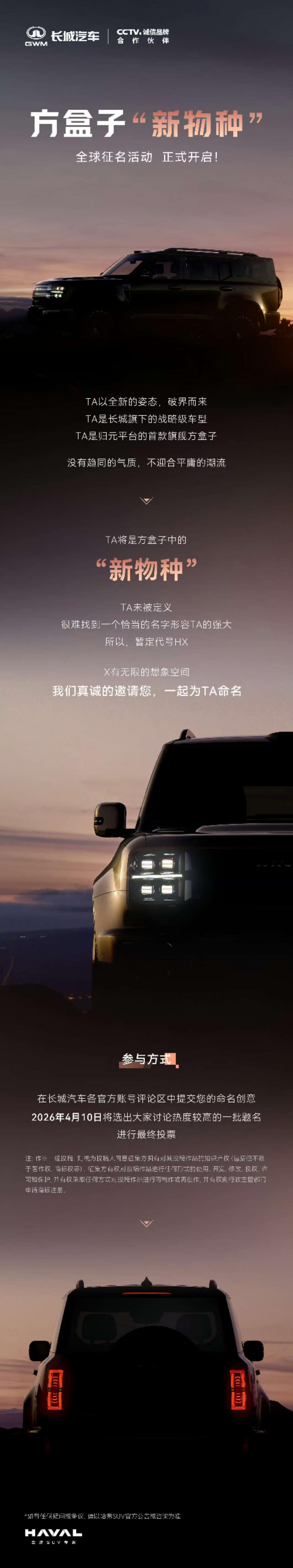 长城汽车的方盒子新物种!再次征集名字,这次大家能不能起一个真正好传播又高级的名字