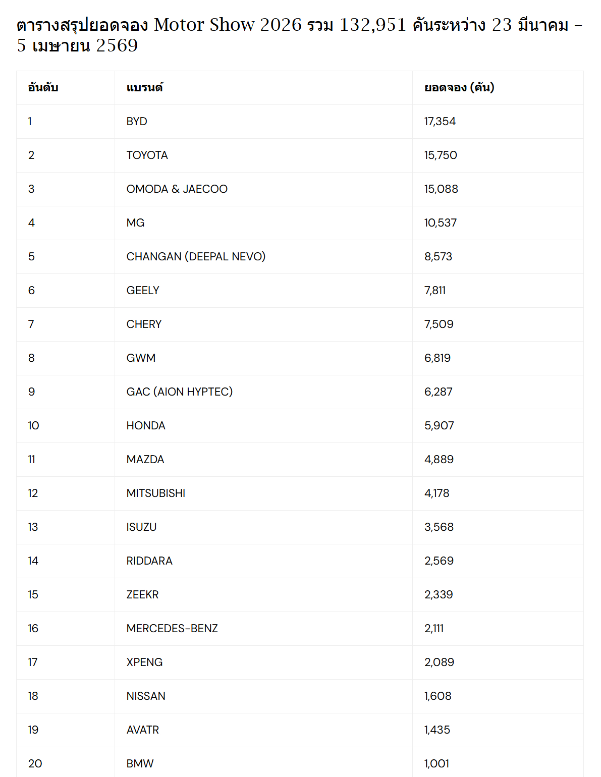 前几天结束的泰国车展,中国车企订单量第一次超过日本登顶了,比亚迪第一,不含腾势是 17,354, 包括的话就是 18,057, 超过了丰田的(15,750),如果奇瑞系加起来算(CHERY + OMODA + JAECOO)是 22,597, 按集团算它就是第一。