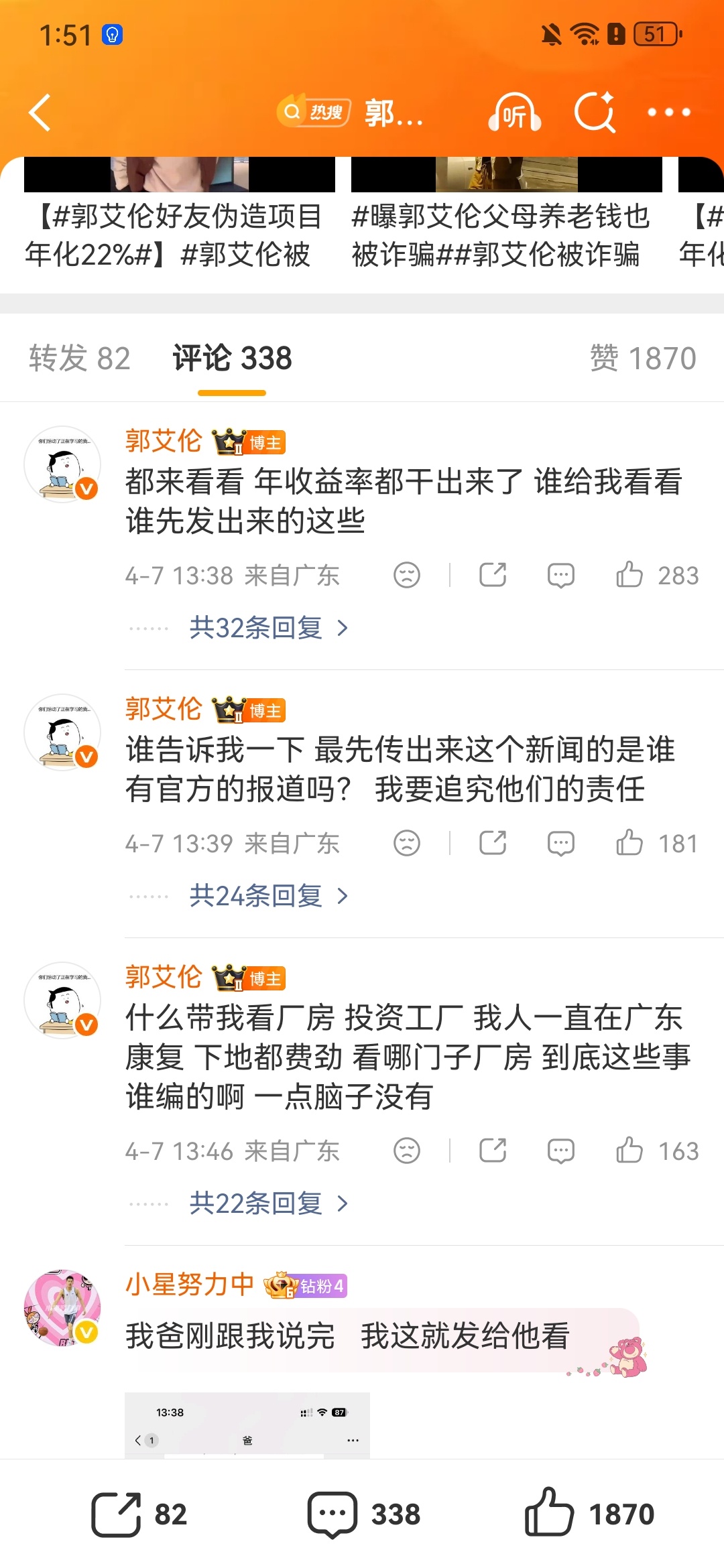 快不要传了,假的!郭艾伦和其工作室相继发表声明,否认被骗。郭艾伦表示,连名字