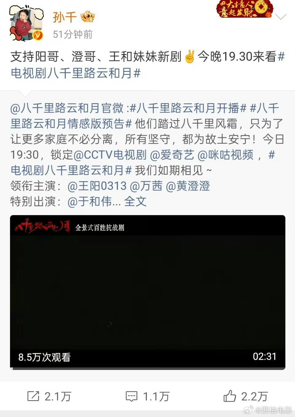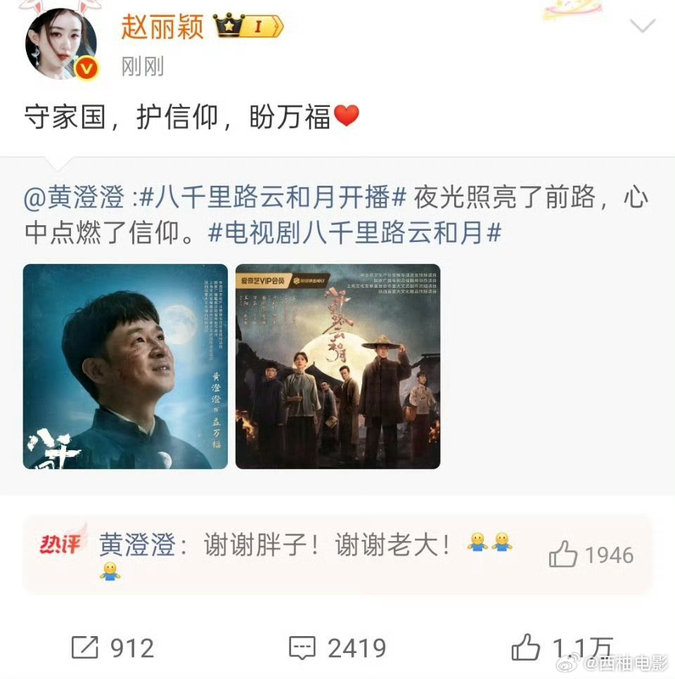 看到赵丽颖、欧豪、孙千齐齐给黄澄澄新剧打call,瞬间梦回《风吹半夏》😭陈宇宙永远是钢三角最疼的那个人啊!赵丽颖欧豪孙千来给陈宇宙撑场面了赵丽颖欧豪孙千给黄澄澄新剧打call 期待电视剧八千里路云和月 !