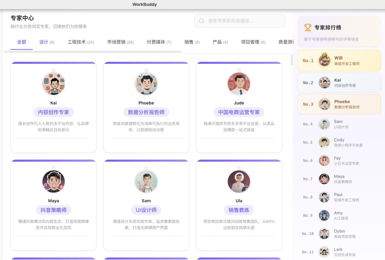 广东网友给专家取名太有班味了最近流行给专家起名,“颗粒度对齐女士”“bug消除师”全是梗。WorkBuddy更绝——它里面140多位AI专家,你随便改昵称!把“用户体验研究员”改成“刘采访”,把“项目经理”改成“背锅侠”,然后照样一键召唤干活。既过了嘴瘾,又白嫖腾讯大咖的实战经验。这功能不上手玩一把,亏大了。年轻人整顿完职场开始整顿专家了