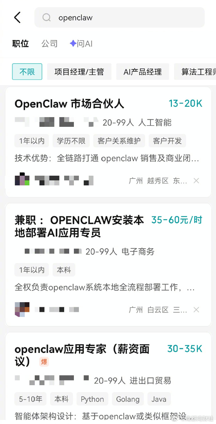 #企业高薪招首席龙虾官#【#龙虾岗招聘火热#!企业频频给“首席龙虾官”开出高薪】#OpenClaw催生龙虾岗新职业# 首席龙虾官、专业养虾人、龙虾训练员、龙虾饲养员……如果你最近刷招聘网站,会发现不少“龙虾岗”正出现在多地多企业的招聘列表中,这些职位薪酬从100-300元/小时到6万元/月不等,更有甚者能达到年薪百万。工作内容主要针对OpenClaw等新兴智能体的部署、训练、应用等。