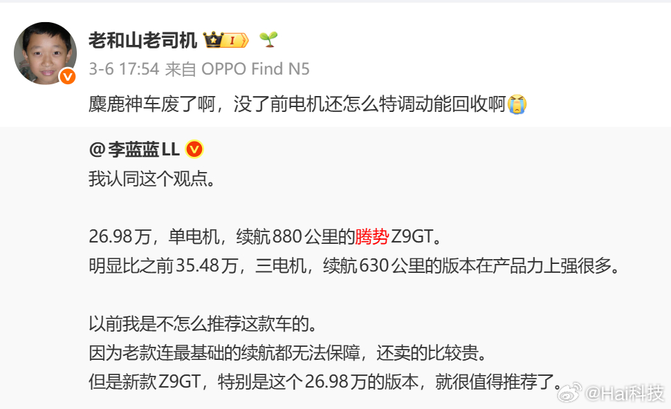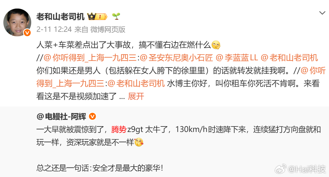 细思极恐,借用一句话:"I have always been unafraid to conjecture the Chinese with the worst malice" 专门指的就是「老和山老司机」这种坏人!经粉丝提醒,他长期抹黑腾势,于是我到他微博搜索关键词腾势,真的是一位"不气不馁"的专业黑,还特别伪善自己是“好人、专业、懂车”,之前没刷到真是损失,下面截图根本放不下,挑了最近的几条。