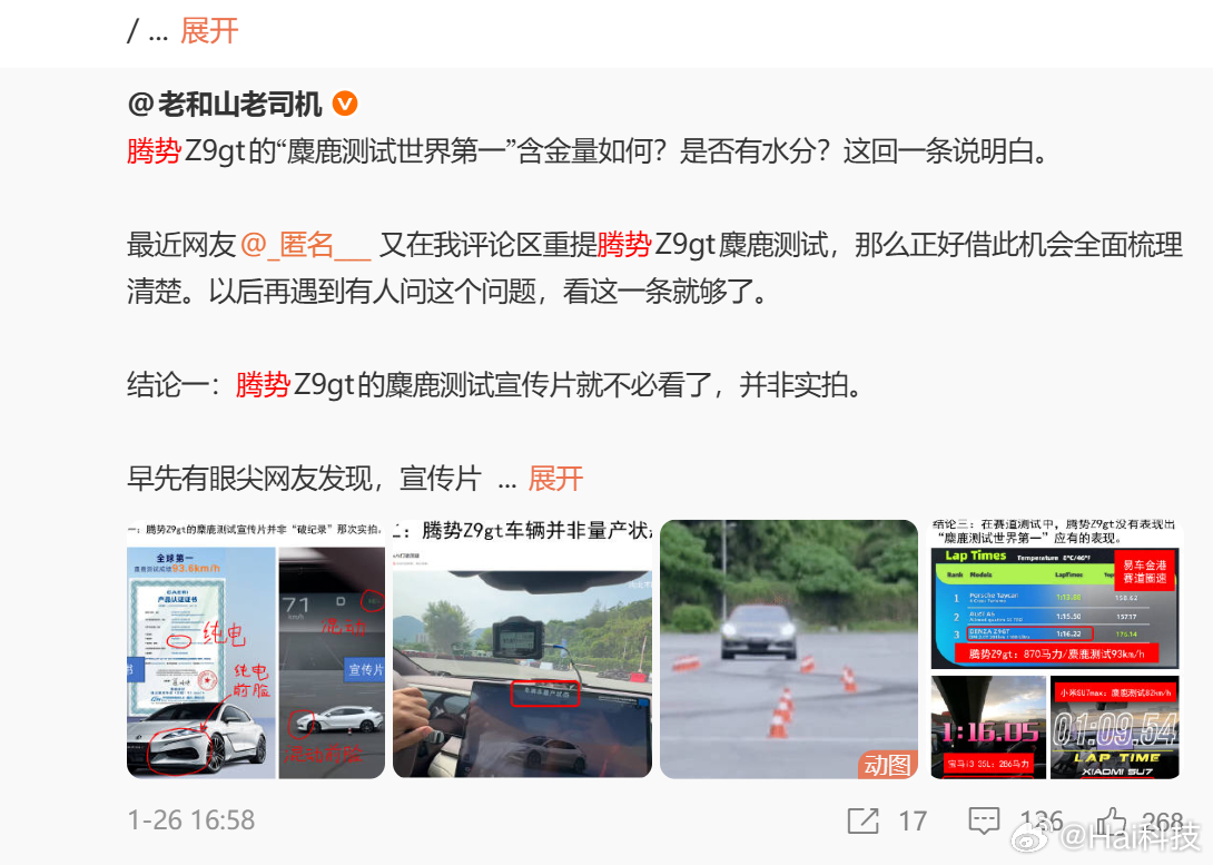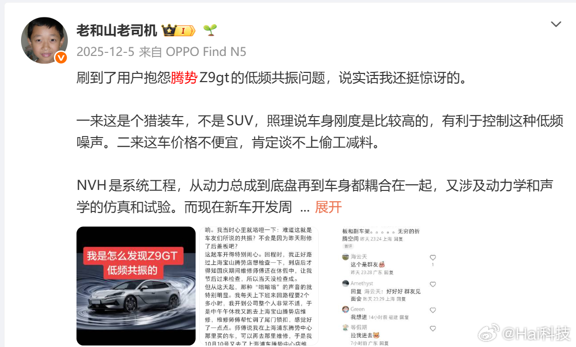 越看越恶心,腾势Z9GT上大电池,他直接说动态性能烂;捏造腾势Z9GT低频共振问题,我开了那么多辆腾势Z9GT怎么一辆都没有啊?好巧你就刷到了;推了单电机版本他又攻击单电机版本;来个漂移赛段的计时赛冠军,他又不乐意了,跟狗一样一直吠,哇塞,你最懂车了!