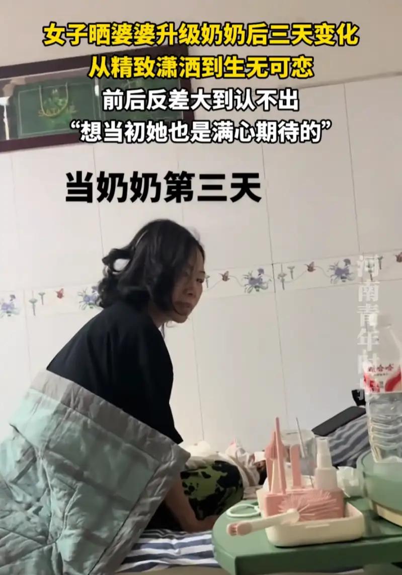 笑死了!河北,女子刚刚生完孩子,孩子的奶奶就迫不及待的来帮忙,第一天来的时候打扮的相当精致,可才过去三天,就完全变了一个人,披头散发的样子让人哭笑不得。网友:等我当了奶奶估计比她还惨 河北一位宝妈,刚生完宝宝没多久,婆婆就主动赶来贴身照顾。 本以为是优雅奶奶带娃名场面,没想到三天后的模样,让宝妈又好笑又心疼。 婆婆盼孙子盼了整整十个月,得知宝宝出生的那一刻,激动得连夜收拾东西赶到医院。 第一天报到时,婆婆打扮得格外体面,头发梳得服服帖帖,连衣服都选了干净挺括的款式。 抱着软乎乎的小孙子,她手脚都放得轻轻的,换尿布、拍嗝都学着护士的样子,一丝不苟。 逢人就笑,满眼都是对新生命的欢喜,任谁看都是精致又靠谱的好奶奶。 可这份精致,终究没扛过新生儿的轮番“折腾”。 第二天开始,宝宝就开启了日夜颠倒模式,饿了哭、尿了哭、睡醒了也哭,哭声根本停不下来。 婆婆刚换完尿布,转身又要冲奶粉,刚坐下想歇口气,宝宝又闹着要抱,连喝口热水的功夫都没有。 一整夜断断续续合眼不到两小时,整个人累得脚不沾地,精气神直接垮了一半。 到第三天,彻底顾不上形象了。 头发乱糟糟地披在肩上,衣服皱巴巴的也没心思整理,抱着孙子坐在床边,眼神都带着疲惫的呆滞。 哪里还有当初的精致模样,完全是被带娃累到“摆烂”的真实状态。 宝妈把这前后对比拍下来发到网上,瞬间引来上万网友围观,评论区全是共鸣。 有网友直言:“太真实了,我妈帮我带娃,一周后比这还憔悴,心疼又无奈。” 还有人调侃:“等我当奶奶,可能第一天就破功,带娃这活,神仙来了都扛不住。” 看似搞笑的反差,藏着老人带娃的心酸。 很多人觉得老人带娃就是搭把手,可只有亲身经历才知道,带新生儿是连年轻人都熬不住的辛苦。 婆婆起初精心打扮,是想以最好的状态迎接孙辈,是想做个体面的好奶奶。 可在孩子的哭闹和无休止的忙碌面前,所有精致都成了奢望,只剩下疲惫和坚持。 老人本没有义务帮子女带娃,她们愿意放下自己的生活,熬着身体来帮忙,全是因为心疼子女、疼爱孙辈。 别把这份付出当成理所当然,多搭把手、多一句体谅,才是对老人最好的回馈。 毕竟,她们也曾是爱漂亮、爱清闲的人,只是为了家人,甘愿褪去精致,扛起带娃的辛劳。