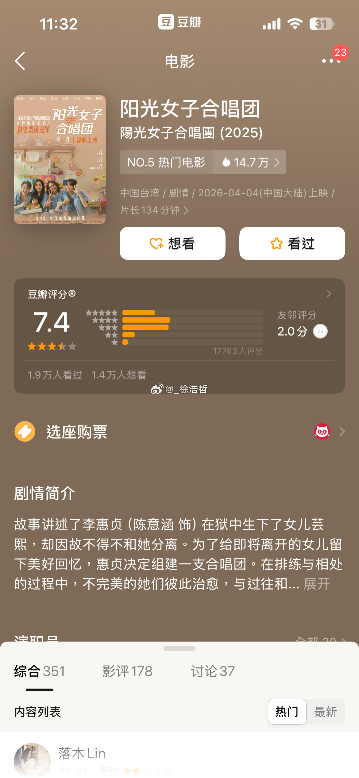 清明档又有四部电影豆瓣已经开分《超级马力欧银河大电影》7.2《阳光女子合唱团》7
