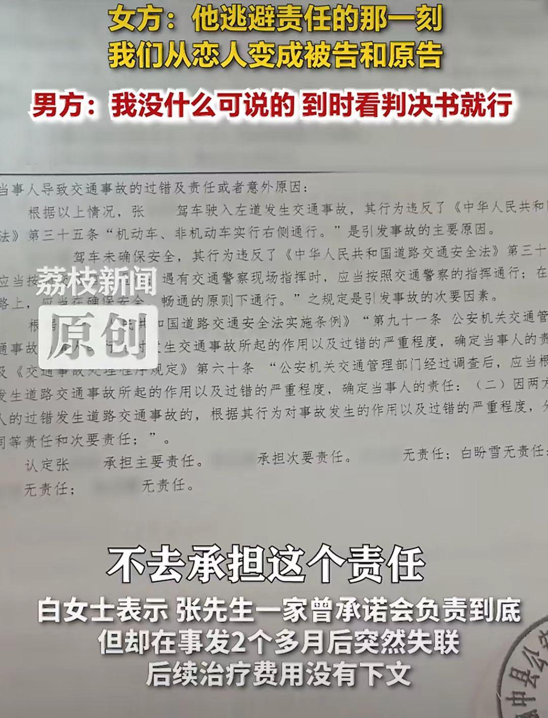 甘肃白女士和男友一起自驾旅游,在路上发生车祸,白女士高位截瘫,男友哭着说我会照顾你一辈子,三个月后,男友离奇失踪了。 张先生带着女友一起自驾出游,张先生在转弯时驶入对方车道,发生严重车祸,导致白女士高位截瘫。 发生车祸后,张先生一家人拉着白女士的安慰说,会对她负责到底,不管是治疗还是后续的生活,都会一直陪着她。 听到男友家人的话,让身处绝望的白女士有过一丝感动。 人们常说患难见真情,这份承诺只维持了两个多月,张先生一家就突然失联了。 白女士不敢信,给男友打电话不接、消息不回,白女士的心凉透了,联系不上后期的治疗费该怎么办? 白女士绝望的躺在床上,一边承受着身体的剧痛,一边还要面对男友的无情。 这场车祸交警认定张先生负主要责任,白女士就联系律师和男友沟通走保险相关事宜,可是万万没想到男友坚决地拒绝签字配合,丝毫没有顾及往日的情分。 真的心寒。 走投无路之下,白女士只好以机动车交通事故责任纠纷将男友张先生告上法庭。 一场车祸,撞碎的不只是白女士的身体,还有她对感情的所有期待。 亲密恋人,在意外发生后,却成了避之不及的陌生人,甚至连最基本的责任都不愿承担。 大家说说,面对这样出事后就逃避责任的前任,白女士的做法是不是完全合情合理?在这种情况下,她还能通过哪些方式维护自己的合法权益呢? 截瘫女子 甘肃截瘫女孩 甘肃白女士 男朋友 春日生活打卡季