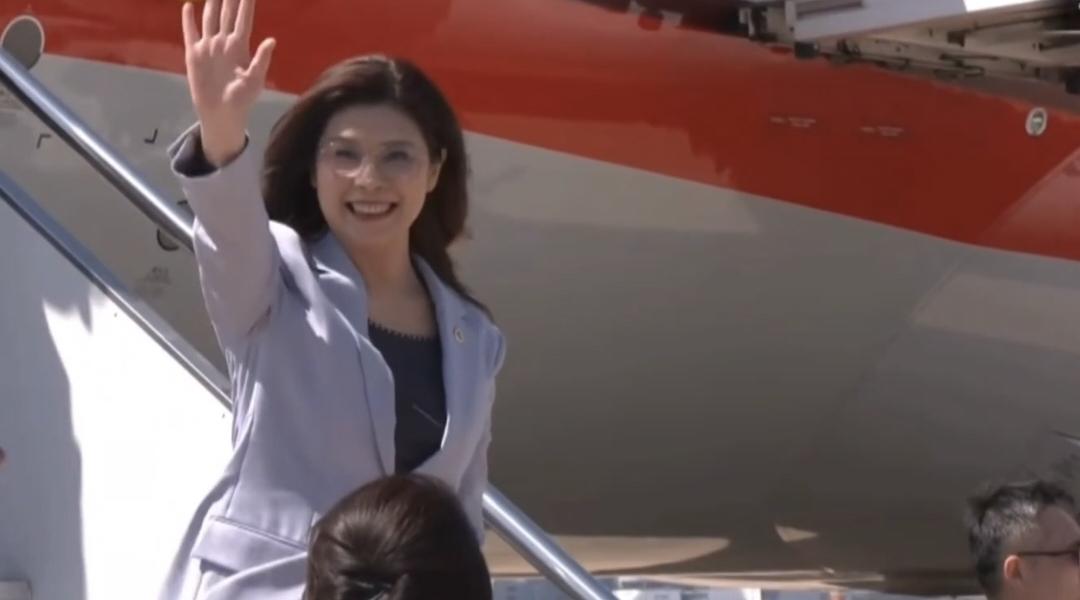 4月7日中午,郑丽文率团抵达上海虹桥机场,开启对大陆的参观访问行程。 刚出舱门