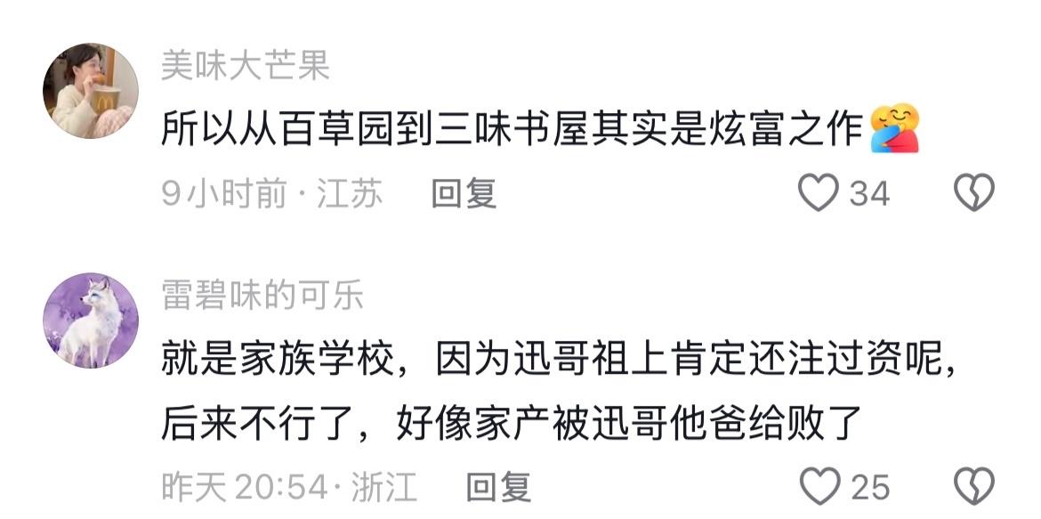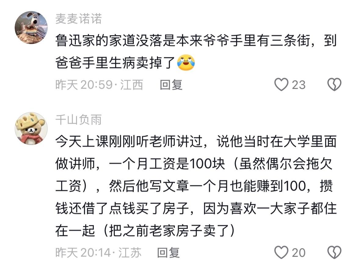 原来鲁迅家是真的大啊,为什么记忆里他很穷? 原来百草园到三味书屋只有几百米,为什么他还老迟到?去了才知道从百草园到三味书屋这么近! 终于有人同样疑惑了,去绍兴旅游的时候发现百草堂和三味书屋就搁了一条马路,面对面的建筑,他还能迟到,他不刻早字,谁刻呀! 我当时去参观,导游说他家当时是绍兴几大氏族之一,三味书屋实际上是他的家学而已,被打也是因为每次卡点失败老师生气了,鲁迅所谓的穷不是那种吃不上饭的穷,是曾经的钟鸣鼎食之家变成了地方豪强的唏嘘。 出国学医能怎么穷,然后还弃医从文,那个年代,完全不食人间烟火的做派,全靠家里底子厚。