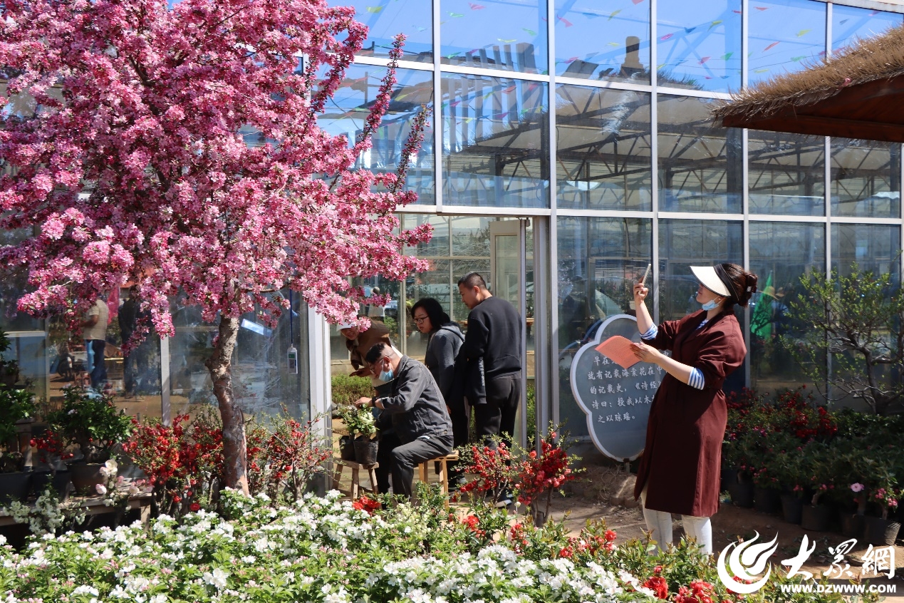 在直播产业园海棠精品展区,沂州海棠、绿宝石、时代红、垂丝、西府等百余种海棠争奇斗艳,游客们纷纷驻足观赏,拍照留念。