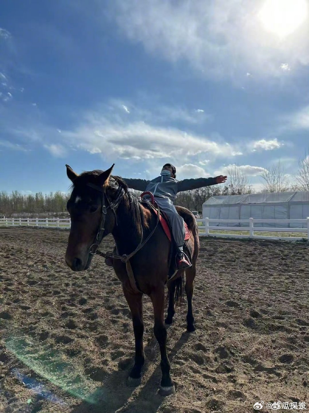 吴京和两个儿子骑马吴京晒两个儿子近照吴京晒两个儿子近照,真的是肉眼可见的长大了,跟着爸爸学骑马,骑在马上的样子又飒又可爱
