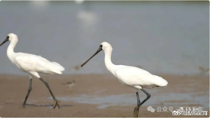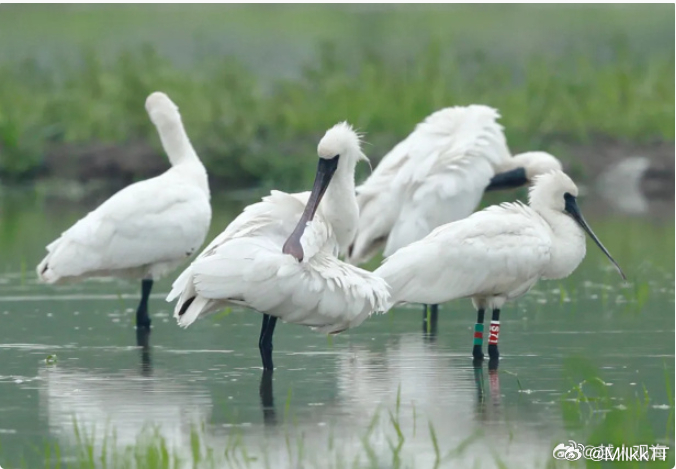 鸟中贵族黑脸琵鹭组团打卡玉环清晨,近 300 只黑脸琵鹭飞抵玉环漩门湾,创近年单