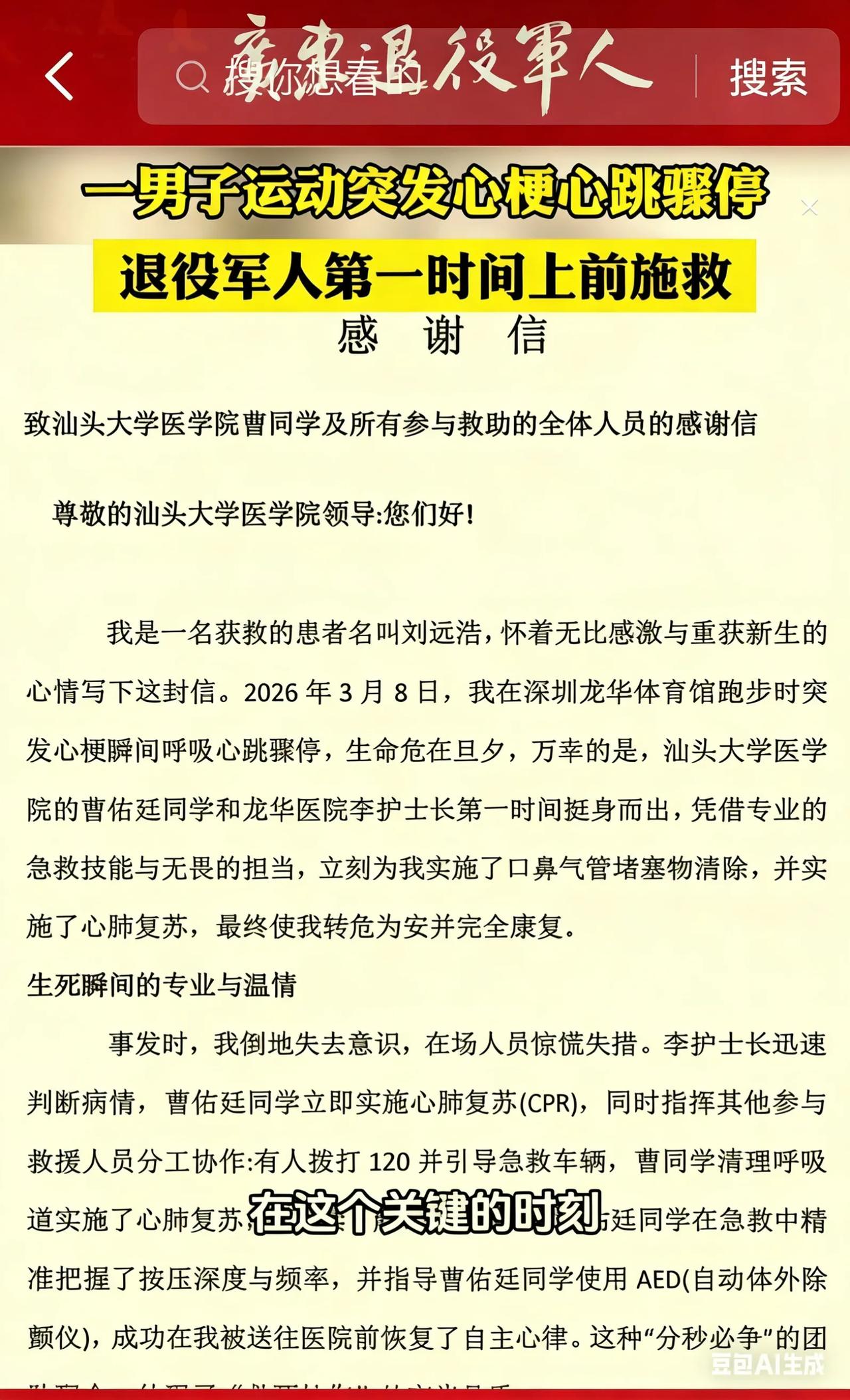 总有人觉得英雄要身披铠甲、万众瞩目,可真正让人破防的善良,从来都藏在最普通的人身上。一个还在读书的大学生,一个休班晨跑的护士长,素不相识,却在陌生人命悬一线的时刻,没有犹豫、没有退缩,用专业与勇气,在生死4分钟里抢回一条生命。没有惊天动地的誓言,没有追名逐利的心思,只是本能地伸手,只是尽责地救人。他们跪在地上的模样,比任何华丽的姿态都动人;他们汗流浃背的坚持,比任何豪言壮语都有力量。原来这世间最暖的光,从来不是聚光灯下的闪耀,而是危难时刻,陌生人不顾一切的托举。愿每一份善意都被看见,愿每一次挺身而出都有圆满结局,这样的普通人,才是我们身边最值得尊敬的英雄。