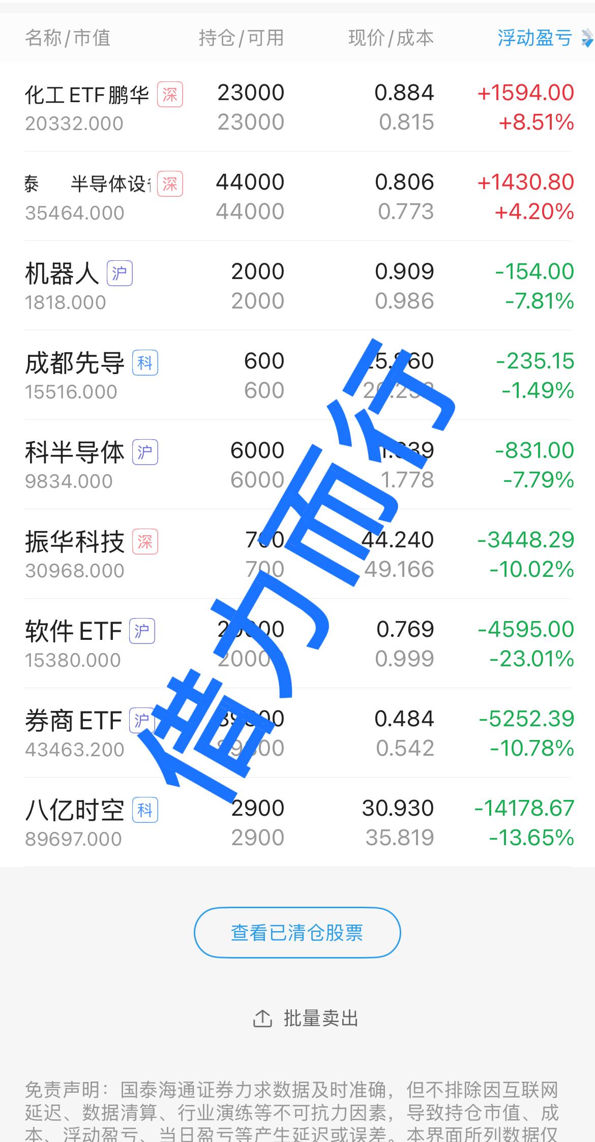 今天手里的个股和ETF全是冲高回落的走势,今天红了1.14个点,算是和中位数个股持平了吧,现在只能拿时间换空间了。大盘 股票 股民 金融 财经