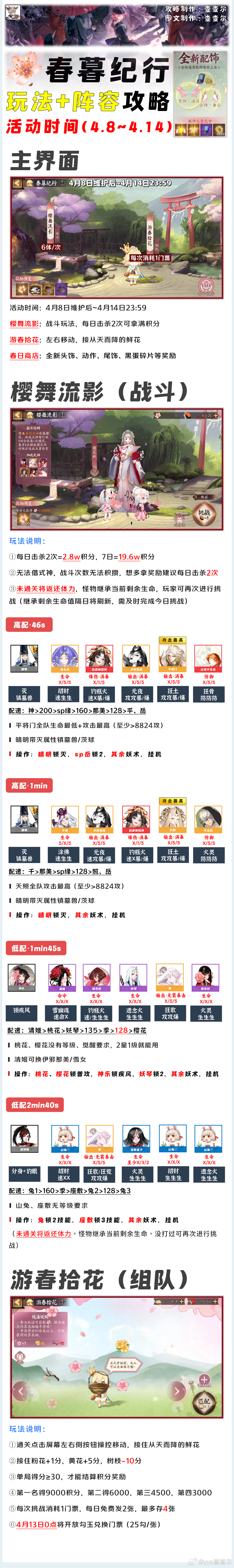 阴阳师手游超话创作官acg优创官 【春暮纪行】4套阵容+全玩法+阵容码▮时间:4.8~4.14▮玩法:战斗+接鲜花小游戏