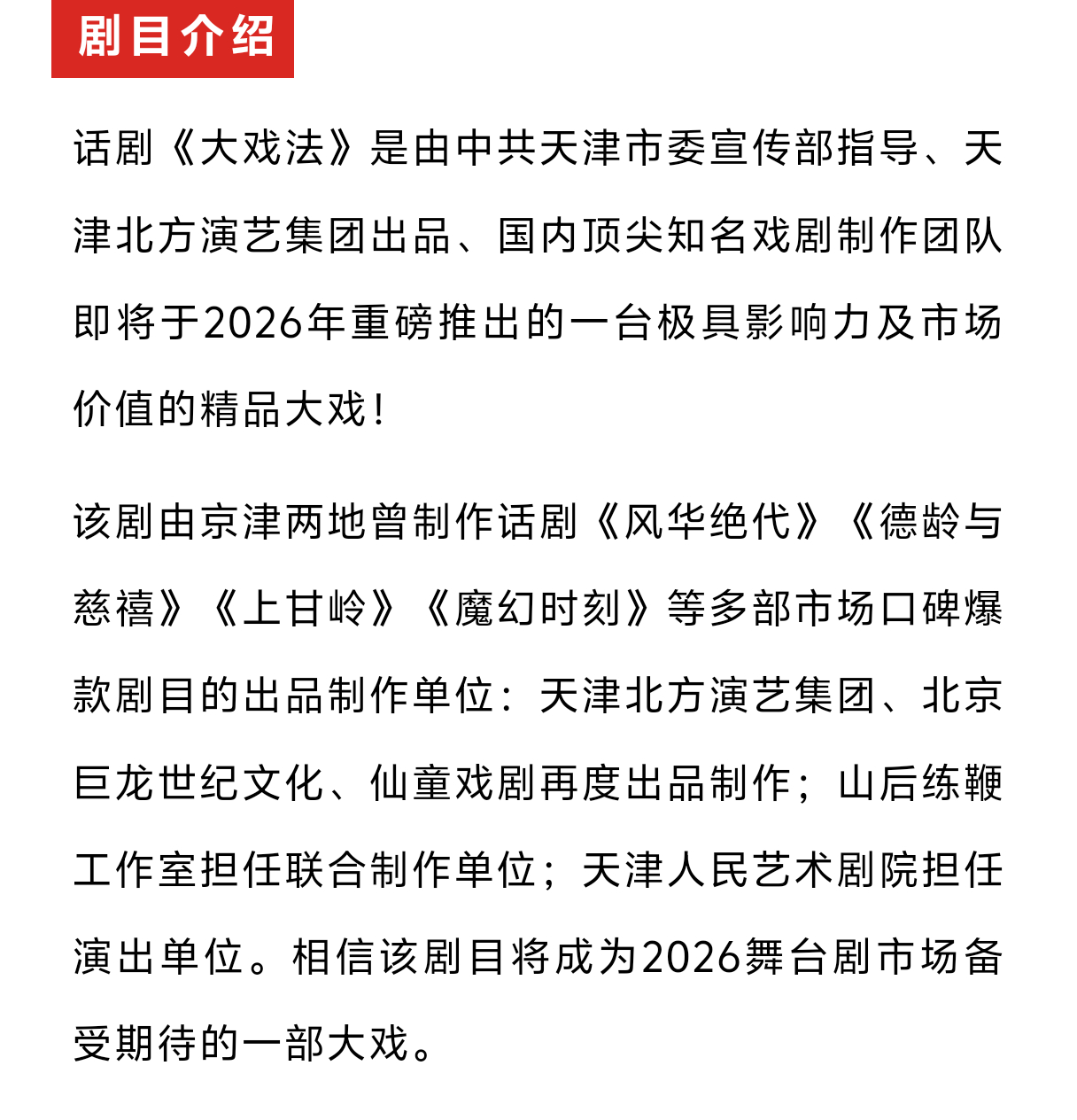🌟中共天津市委宣传部指导🌟天津北方演艺集团出品🌟国内顶尖知名戏剧制作团队🌟2026舞台剧市场备受期待的大戏
