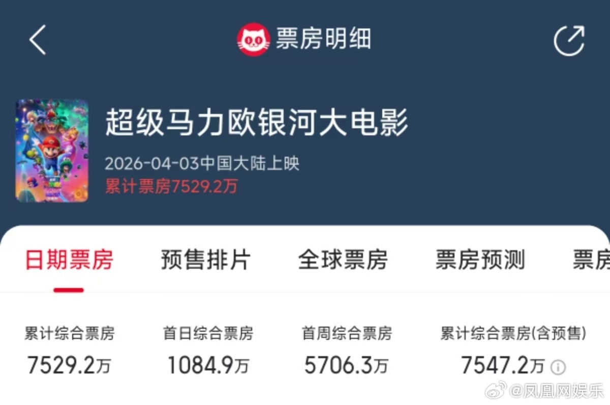 截至目前,领跑清明档的《超级马力欧银河大电影》累计票房7529.2万元。此前,“凤凰院线经理指数”栏目成功预测其领跑清明档。目前该片的口碑略显分化,至于票房能否超越前作,要看后续口碑的发酵情况。