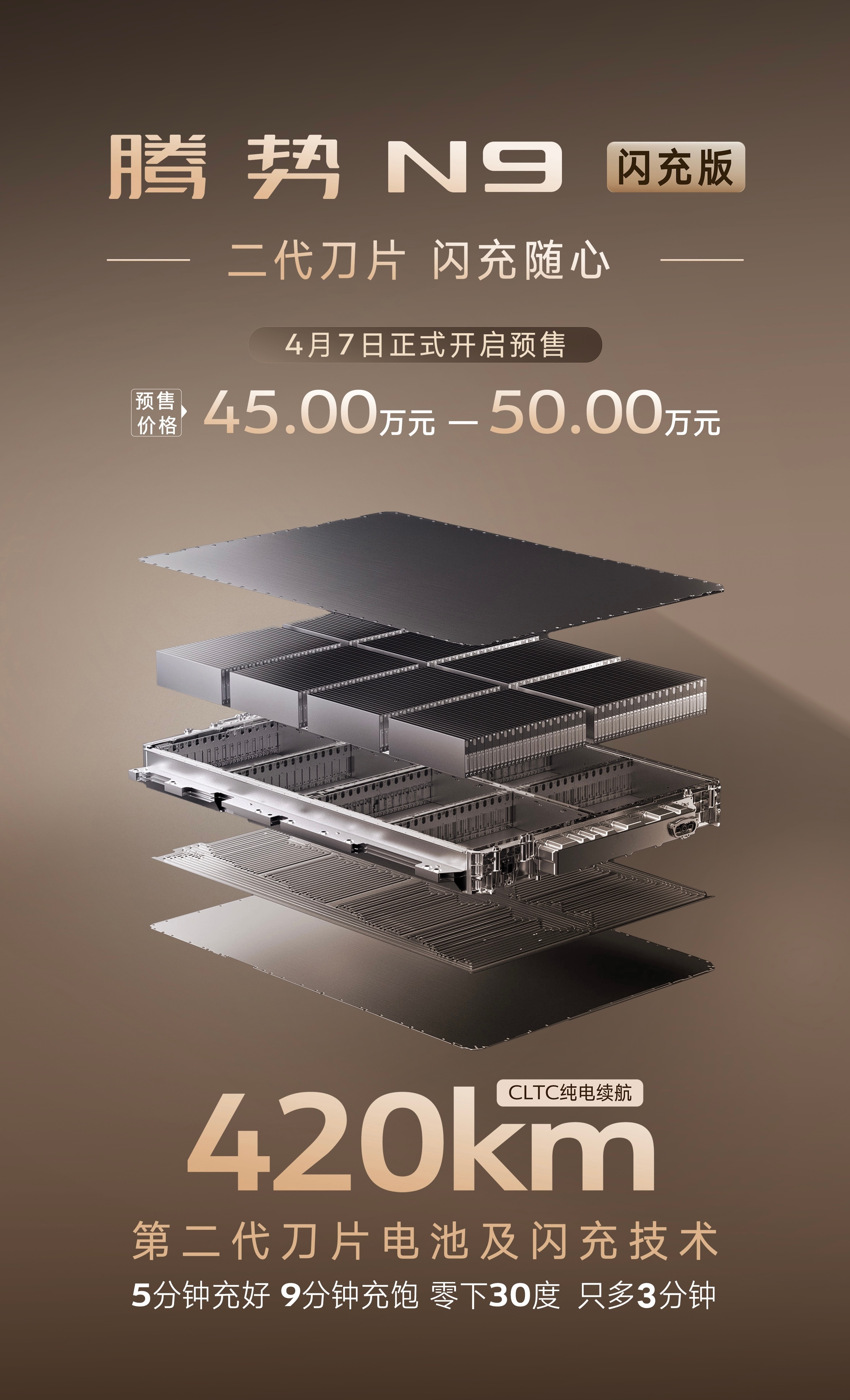 腾势N9闪充版也开始预售了,因为电池度数从46.9度→75.3度,所以预售价提升到45万起,比现款还是贵不少。看看上市价格能不能比更低吧。