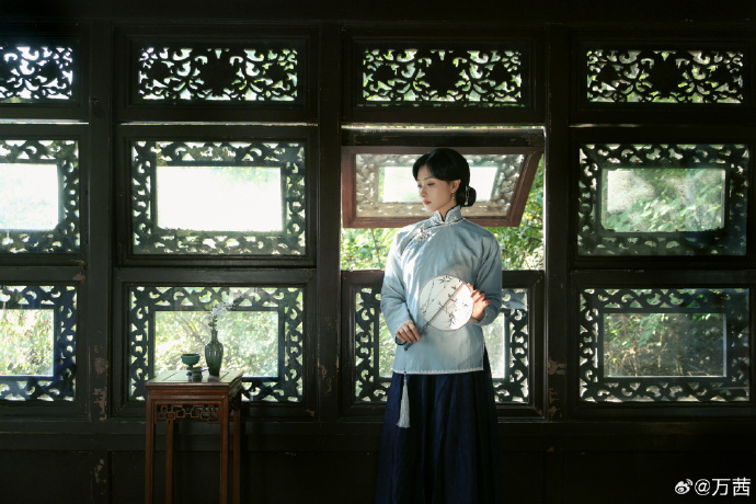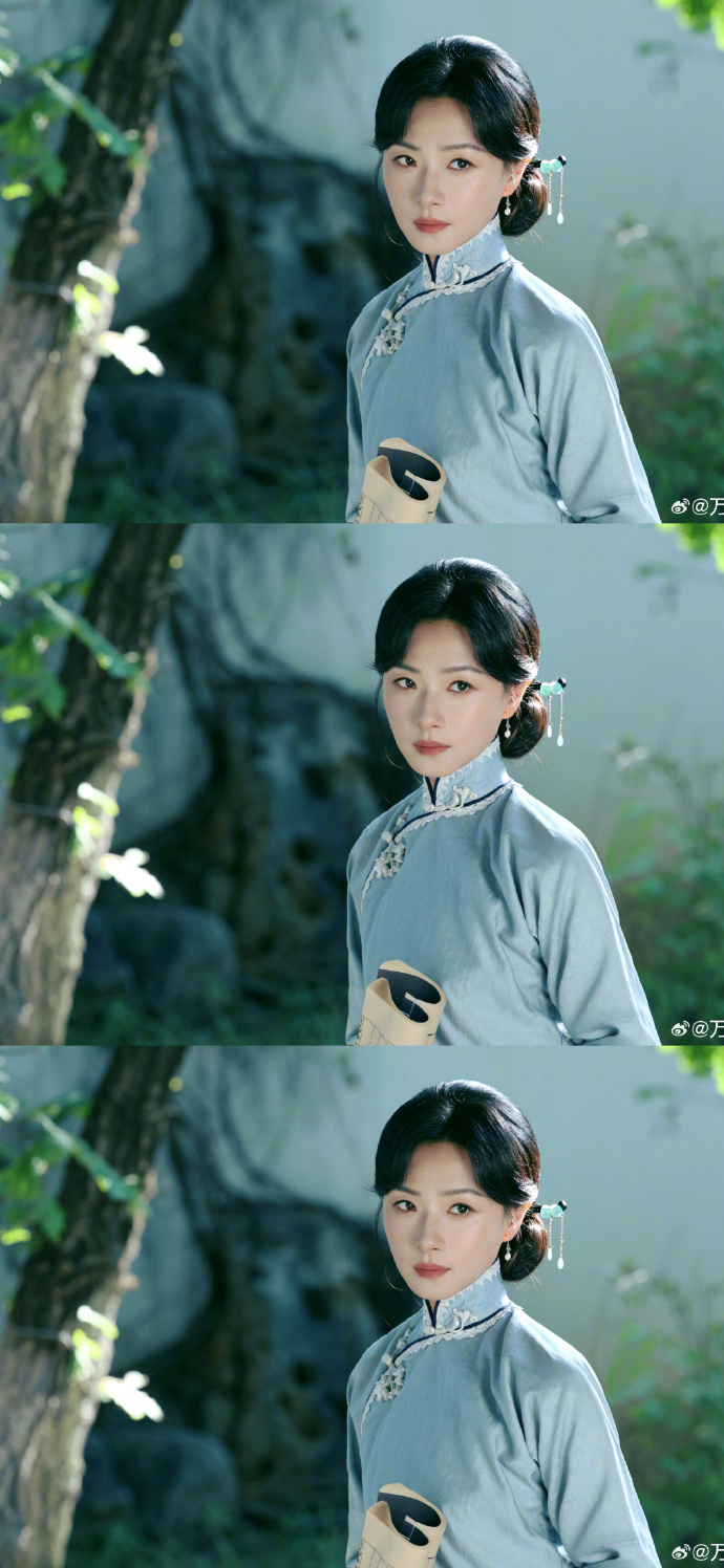 谁懂啊!万茜民国白月光造型 真的杀疯了!雾蓝旗袍配玉簪流苏,温婉又坚定,这才是民