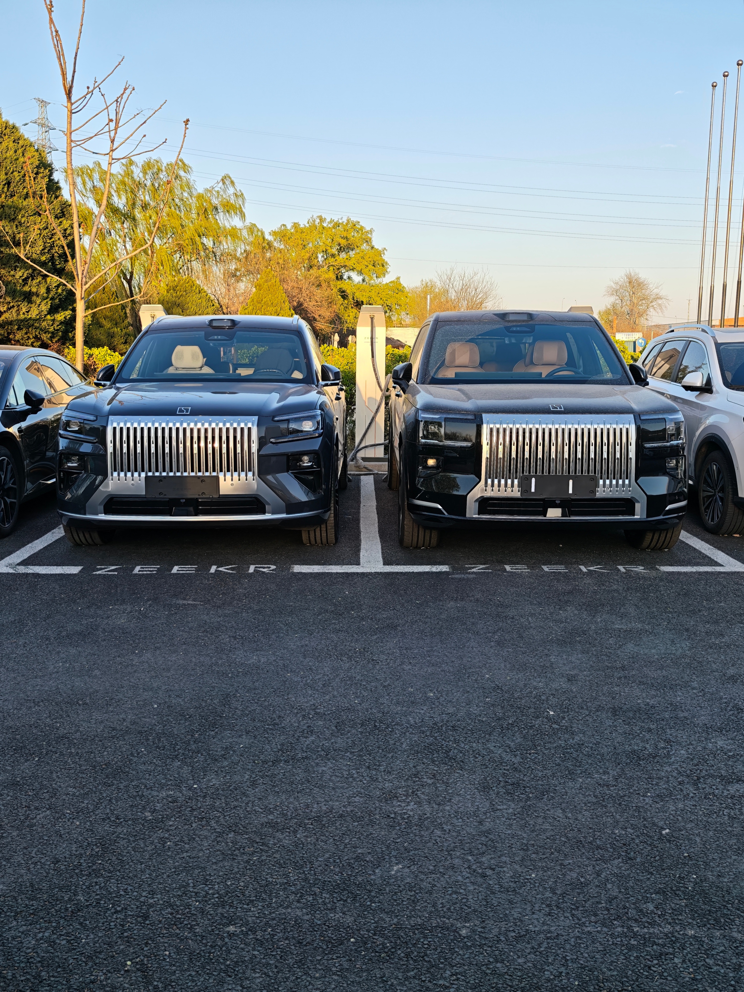 极氪8X和极氪9X同框,9X明显更高大、更方正超大矩形格栅已经成为了极氪新的家族