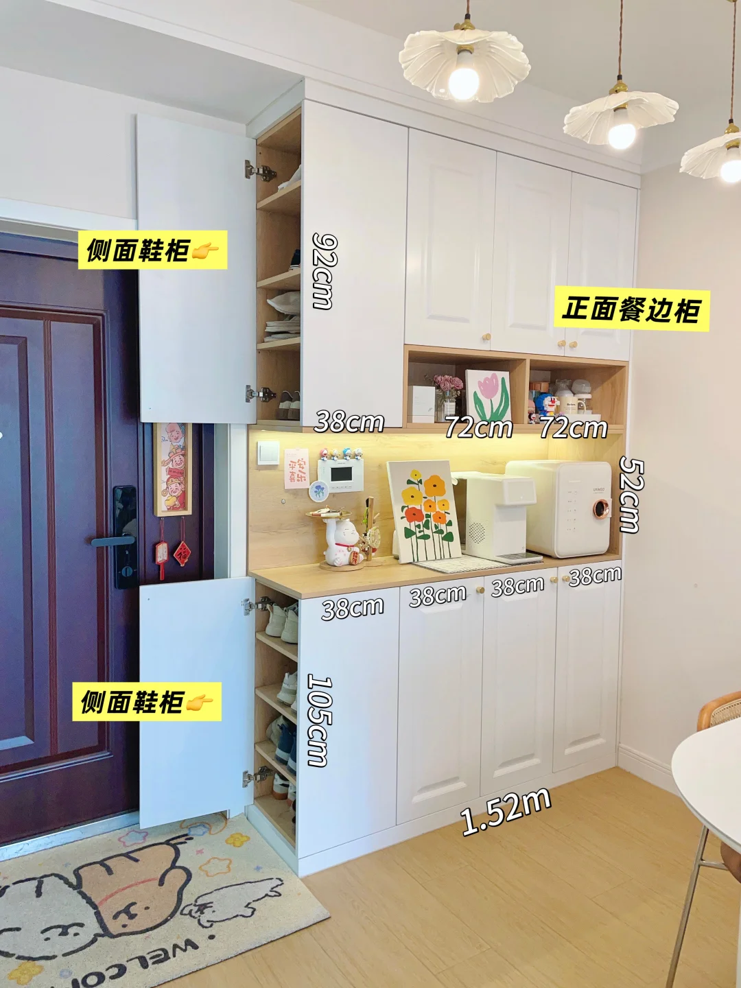 入户无玄关➕鞋柜➕餐边柜一体设计!附尺寸图