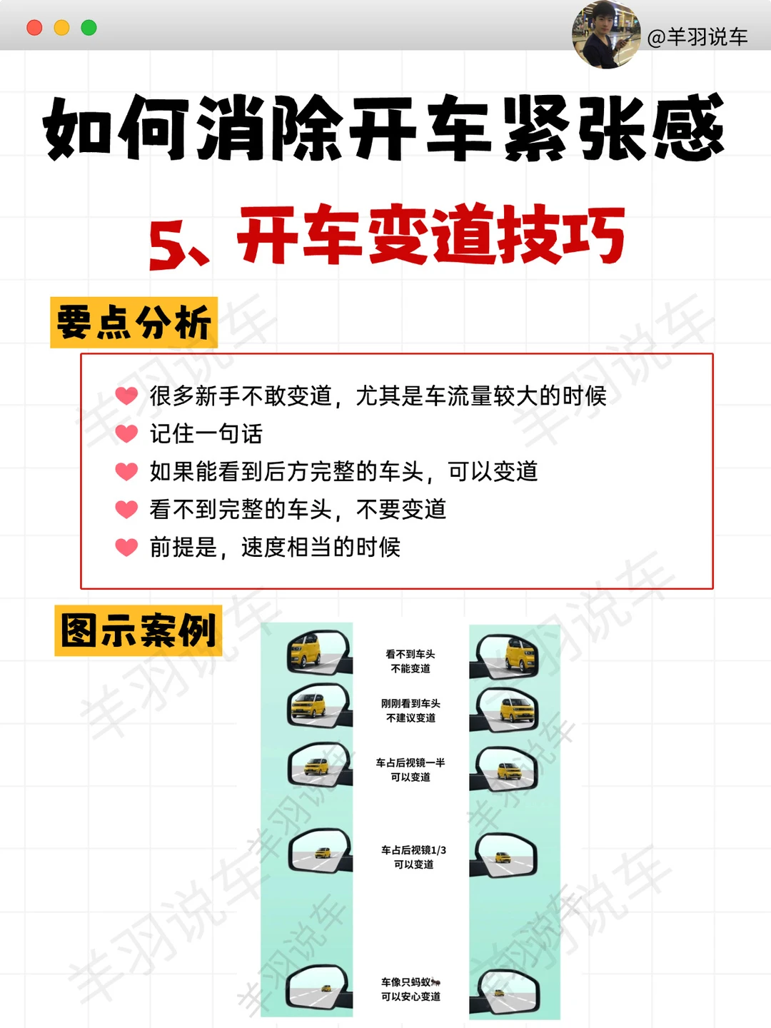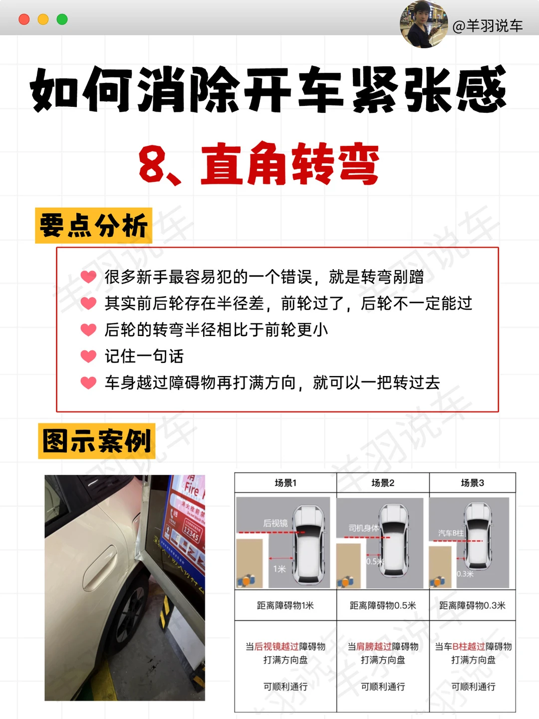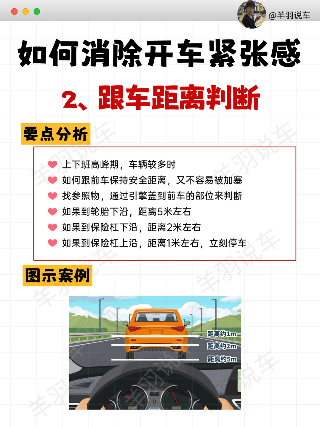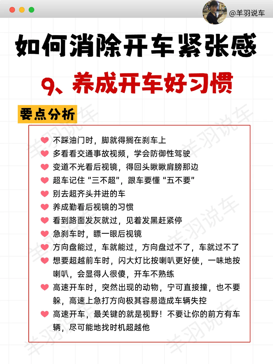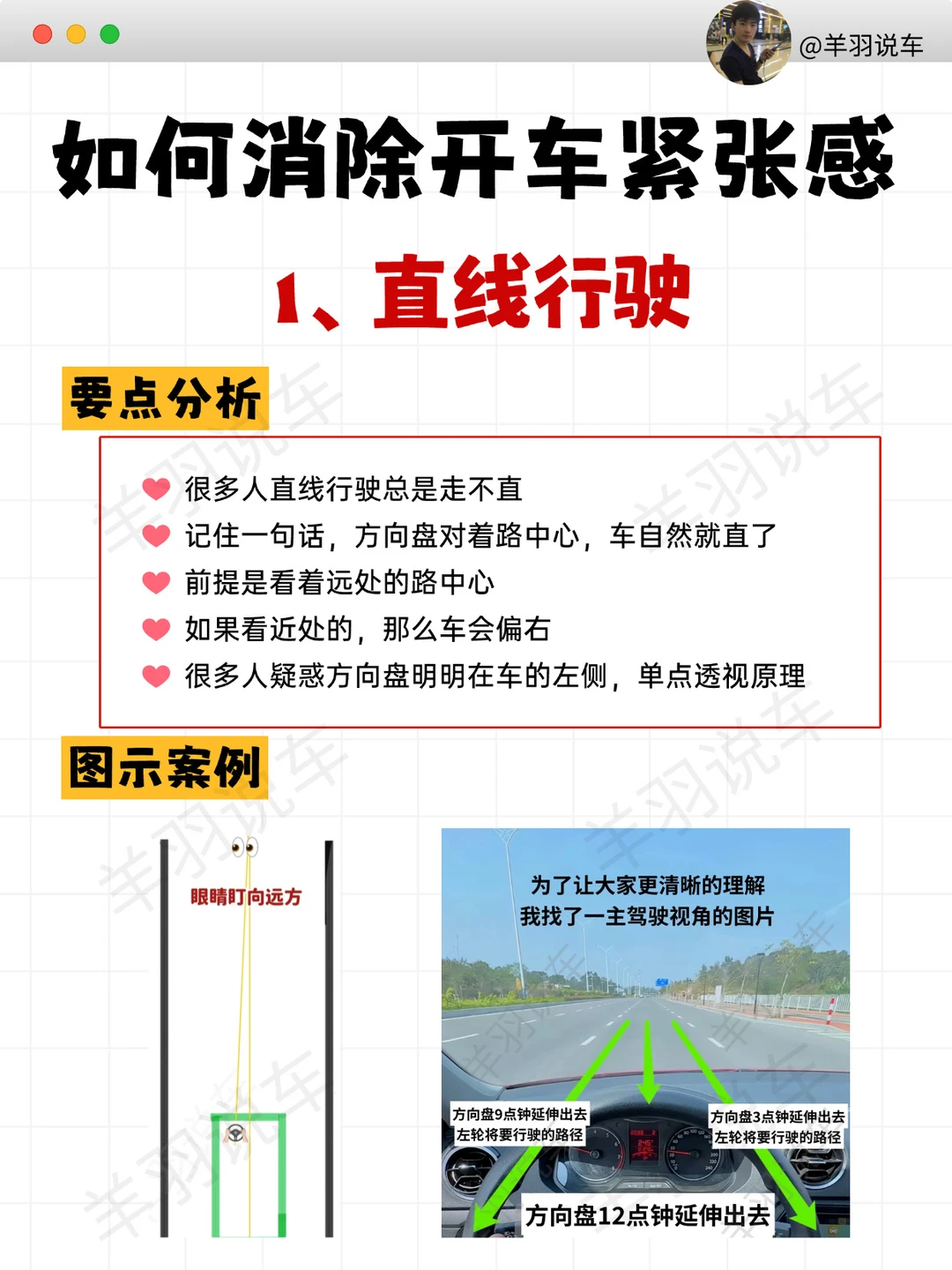 姐妹有没有发现 很多人虽然拿了驾照 但一上车还是很紧张 其实有三个原因 1⃣️对车的构造不熟悉 不清楚车子有多宽 不清楚车子距离前方的车辆、行人等距离 没有把车内的静态与车外的动态做关联 2⃣️没有开车技巧 比如很简单的车库转完,容易刮蹭 比如很简单的直线行驶,总是走歪 比如很简单的窄路会车,不会判断与旁边车距 等 3⃣️没有防御驾驶的意识 比如右侧车道停一辆公交车,一脚油门超过去 比如高速上与大货车并驾齐驱 比如不看后视镜突然急刹车 等 ❤️因此,想要克服开车紧张 首先要清楚汽车的构造并掌握一些开车技巧,再能提升防御性驾驶的意识,开车就会变得很松弛 写给不会开车的姐妹们,希望可以帮助到大家