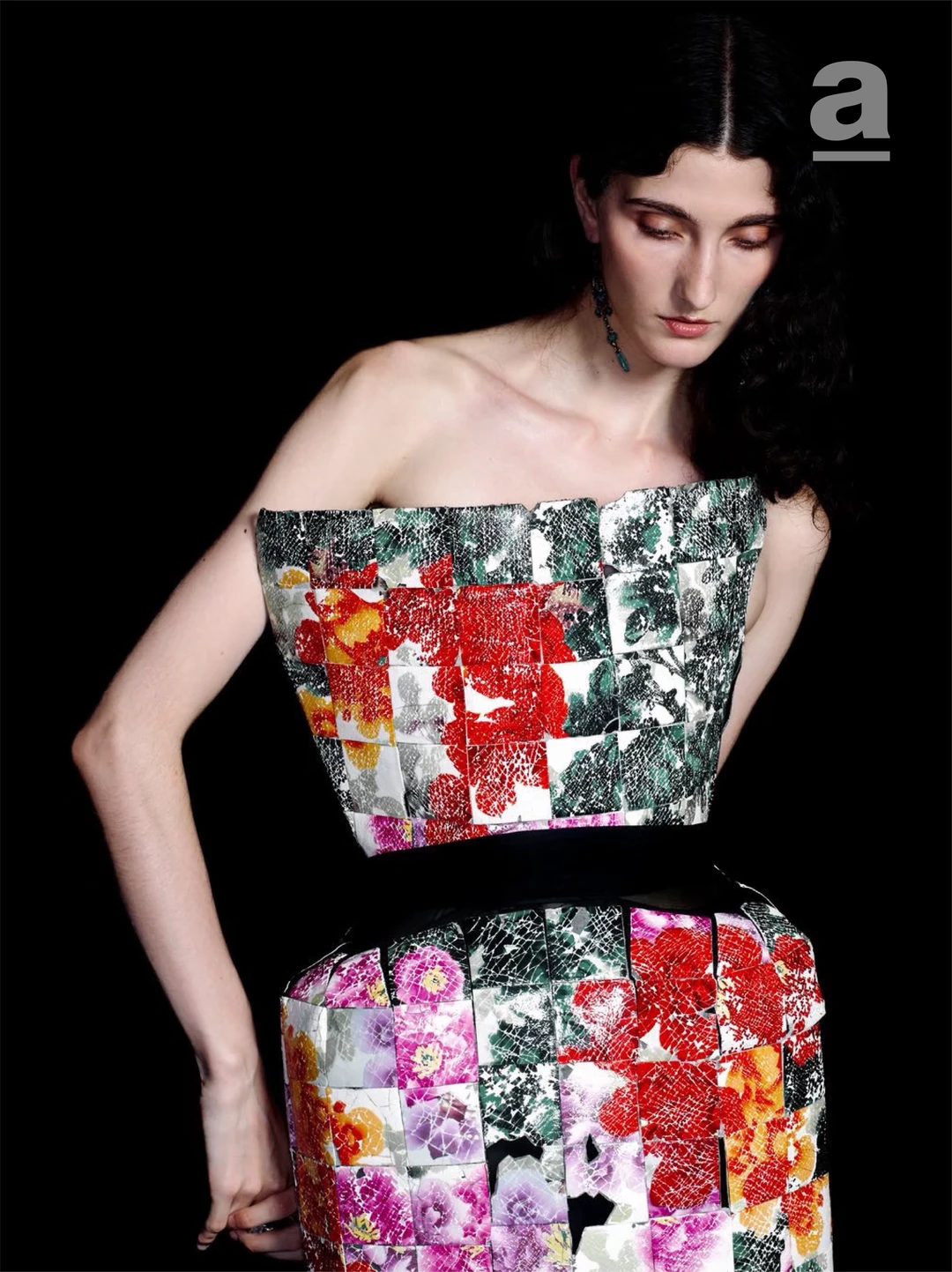梁砾文的工艺则扎根于东方制瓷传统。他将超薄瓷片手工穿孔、精细缝制,再轻碾出自然的开裂纹理,把瓷的坚韧与面料的柔软完美融合。