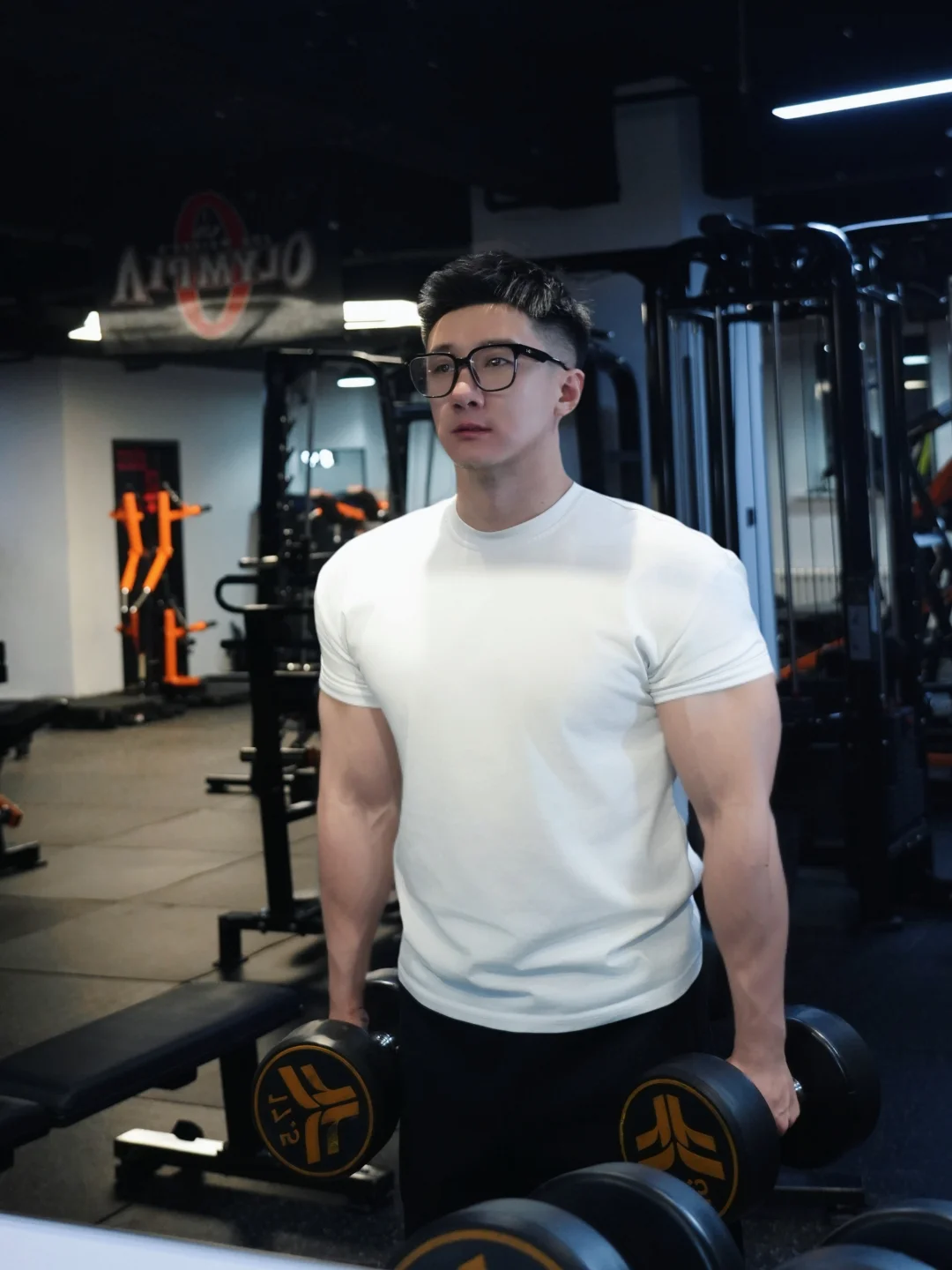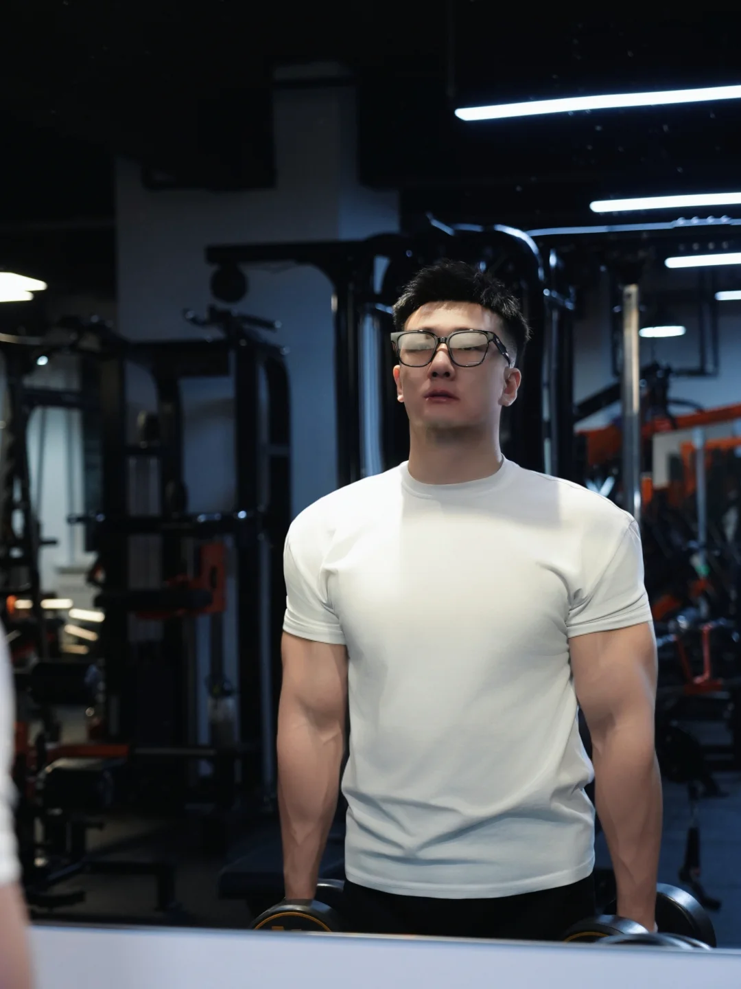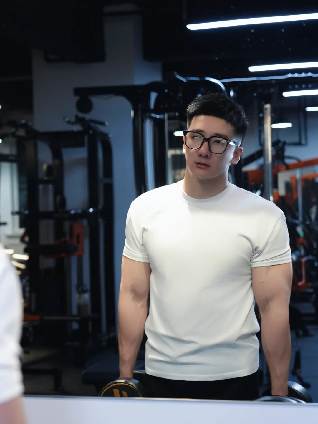 规律健身这么多年,最骄傲的就是能把白T撑满的手臂线条。以前穿T恤软塌塌没型,现在白T一穿,安全感直接焊在身上!