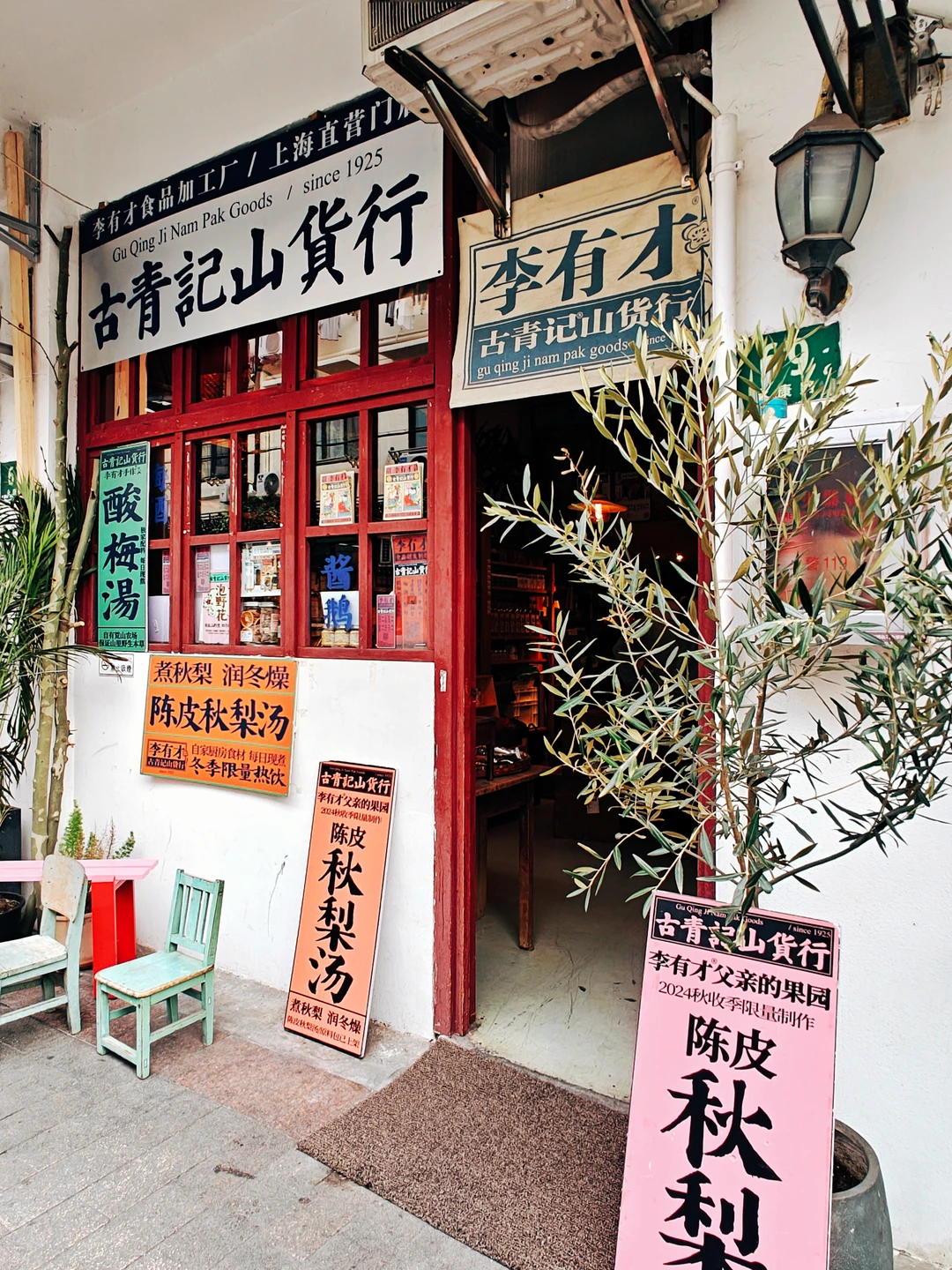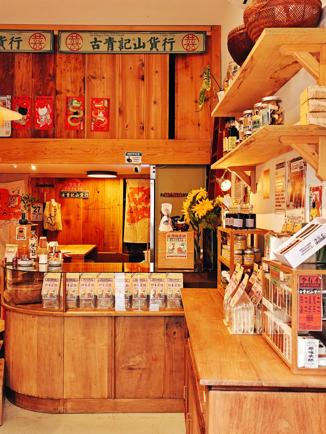 🔸像是应该开在古镇景点的古青记山货行,吱呀木门后藏着90年代复古风情,有酱鹅、手作米糕和酸梅汤。