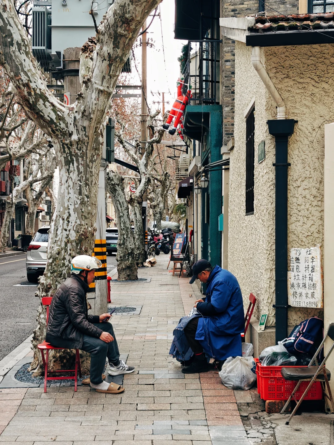 这里保留着“楼上住人、楼下开店”的老上海韵律。梧桐掩映的人行道上,你能看到时髦门头旁紧挨着老式家电维修铺和烟杂店,遛狗的老外骑着单车从弄堂口的修鞋匠面前飞驰而过,穿着时髦的年轻人和当地爷叔同坐在一张长椅上刷着手机。或许有人会觉得,其实永康路是过气了,可我觉得,没有安福路和武康路过度观光化的商业痕迹,这里的烟火气和松弛感,都让人更想逗留。许多原住民仍在永康路上生活着,多年的商业化并没有将马路和生活割裂开来。
