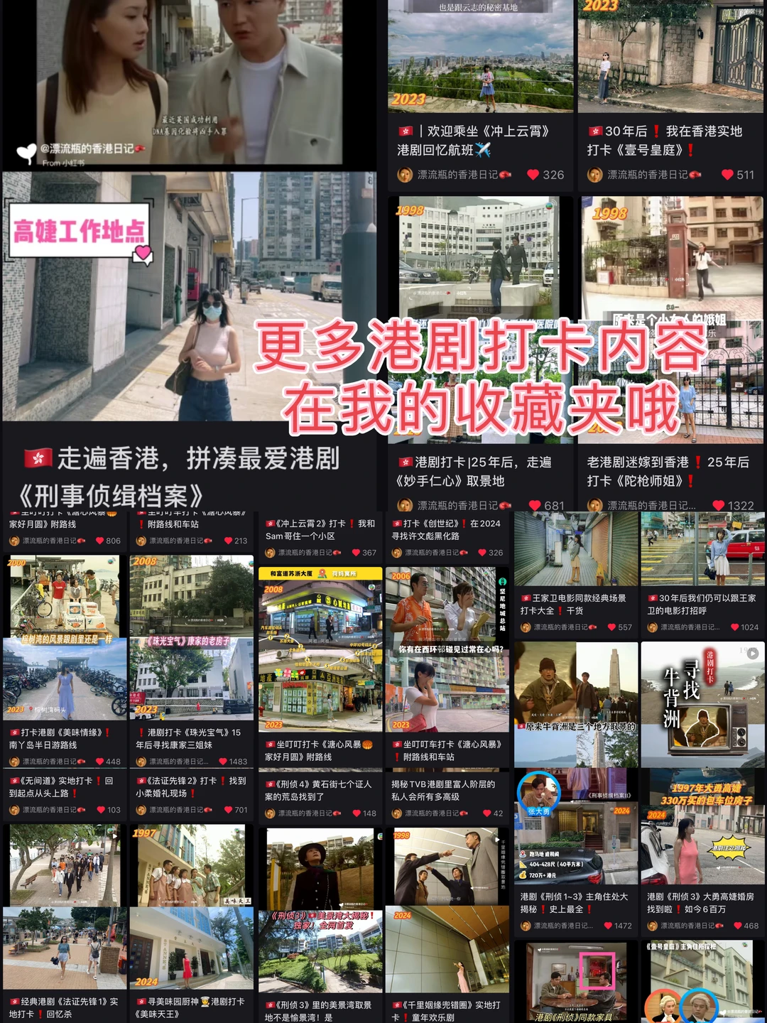 🩵主页还有几十部经典港剧、日剧、美剧打卡和主角薪资住处揭秘等内容,如《刑侦》系列、《鉴证实录》系列、《北京人在纽约》等;还有牛背洲、美景湾🏘️揭秘,看“港剧打卡”专辑