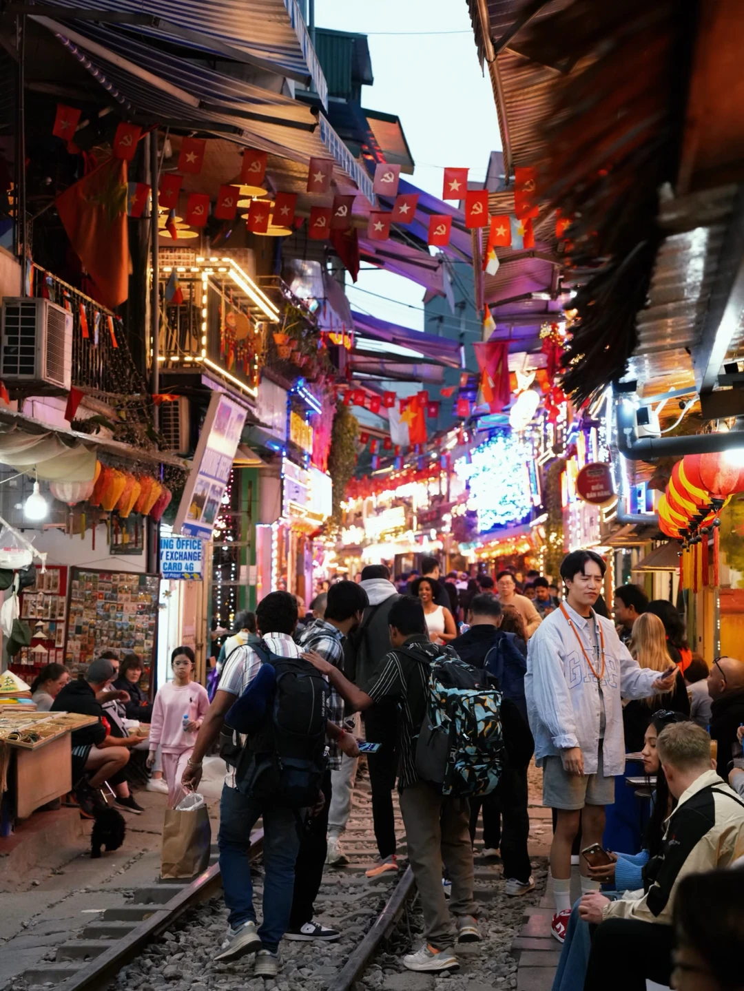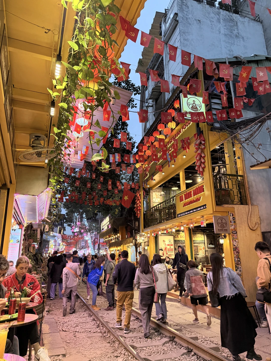 ✔️火车街:不管白天还是晚上都人潮涌动,铁路两边是咖啡店和小酒馆,坐下来等火车从旁边呼啸而过