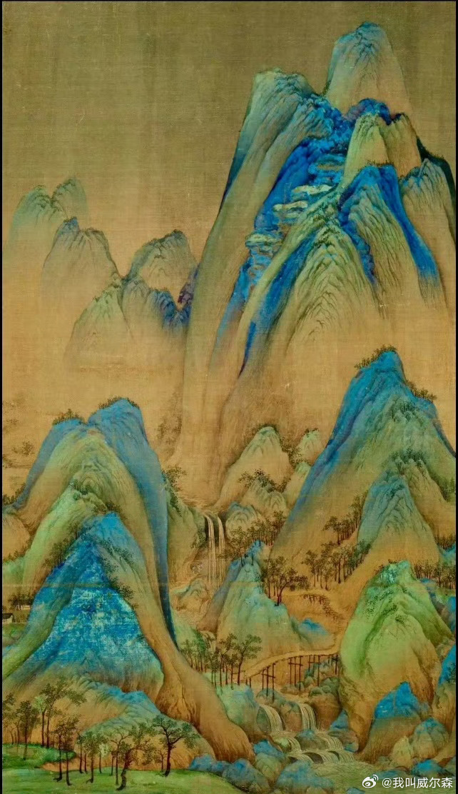 它是大青绿山水,用石青、石绿、赭石等矿物颜料层层叠加,所以历经近千年依然鲜艳夺目,这就是“只此青绿”的来源