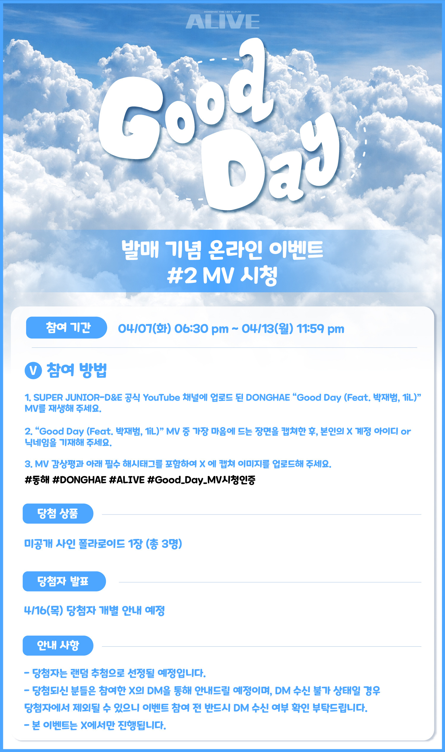 [📢]DONGHAE THE 1ST ALBUM [ALIVE]‘Good Day (Feat.박재범, 1iL)’ 先公开曲发行纪念活动