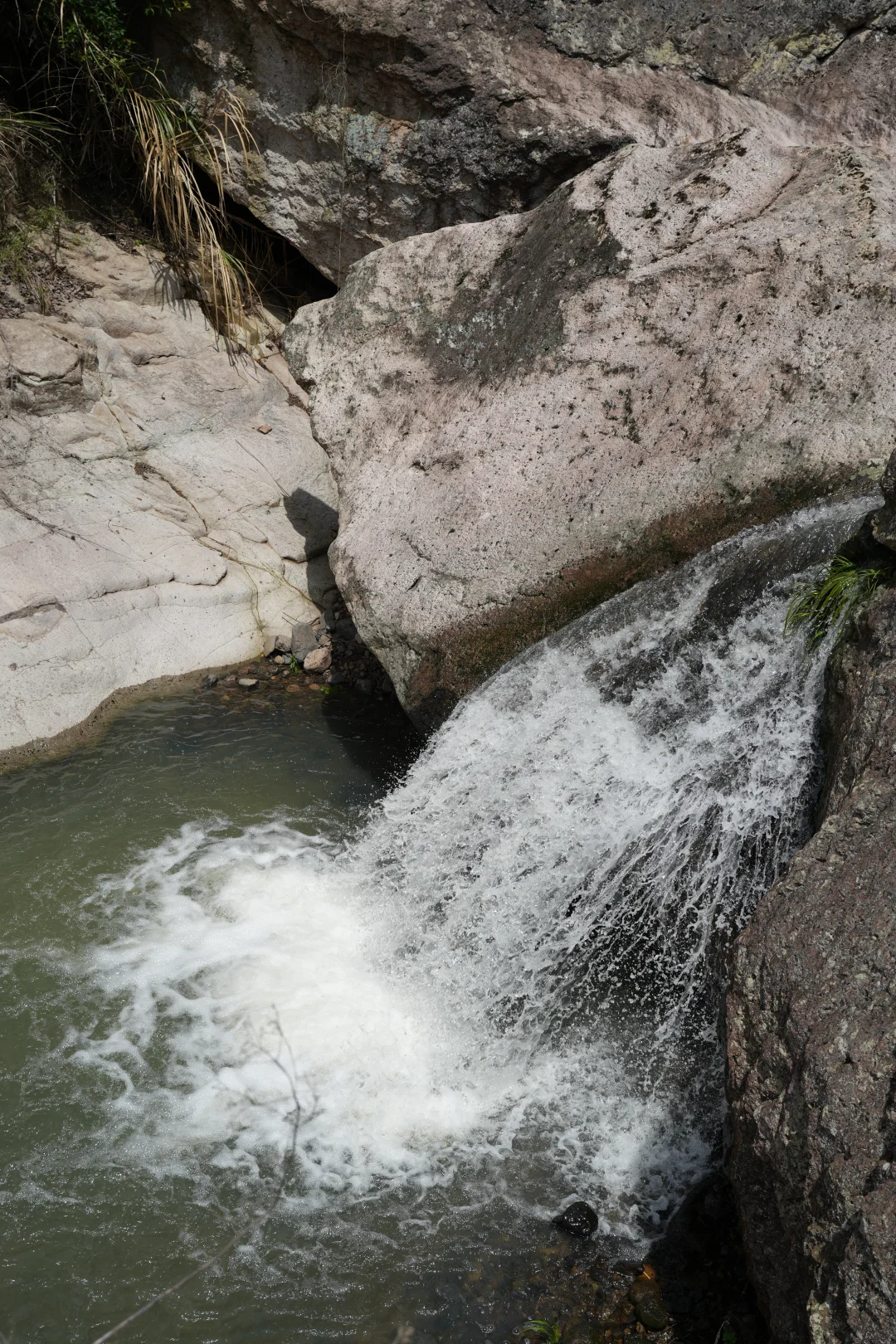 精华段:茶园上行,经宝珠潭瀑布;打卡11米高“倒脱靴”奇石(标志性景观);登顶后下坡,视野开阔。