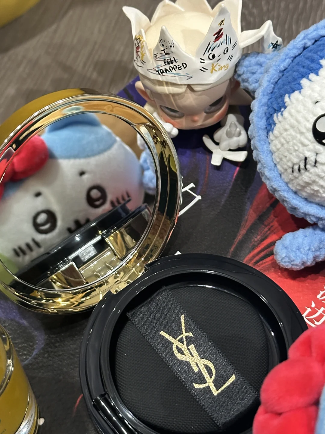 p3 是刚买的气垫和小八合照 巨萌…谁懂小八蝴蝶结照镜子的萌感…(^^)